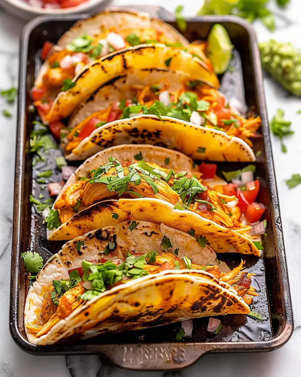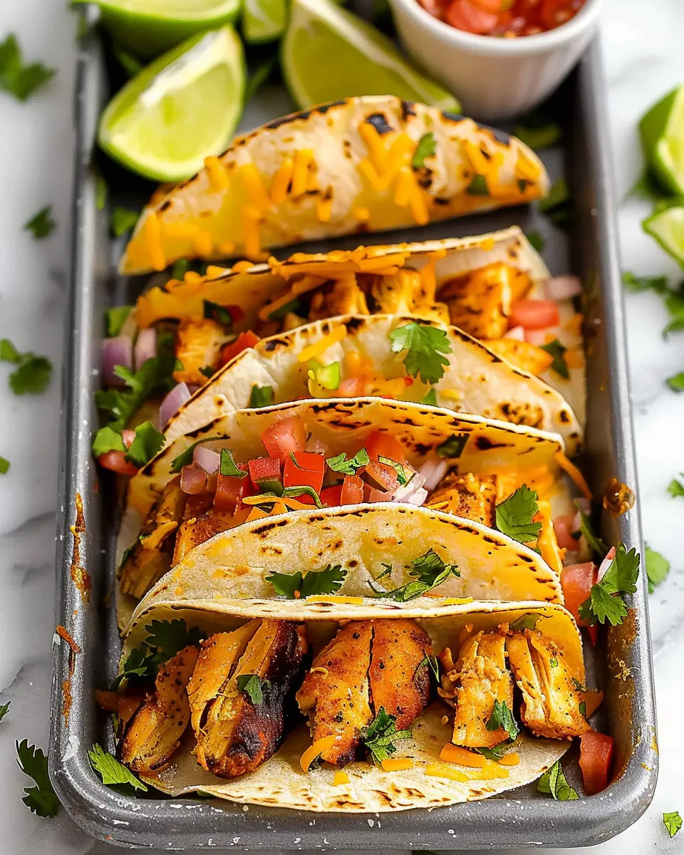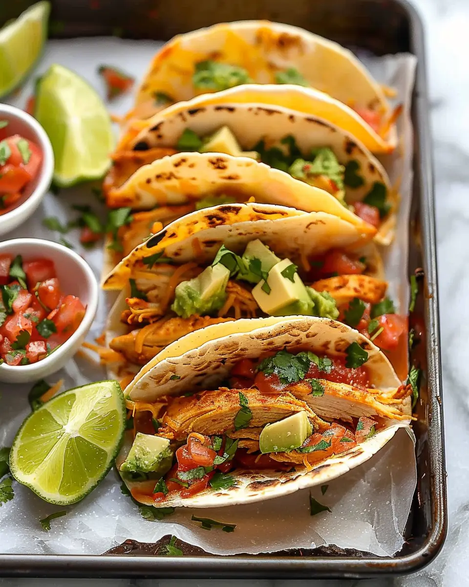 Once you’ve assembled your tacos, it’s time to send them into the oven. Bake them for about 10-12 minutes or until the cheese is melted and bubbly. The scent of baking chicken and cheese will transform your kitchen into a fiesta. Trust me, you’ll be happily munching on these in no time.