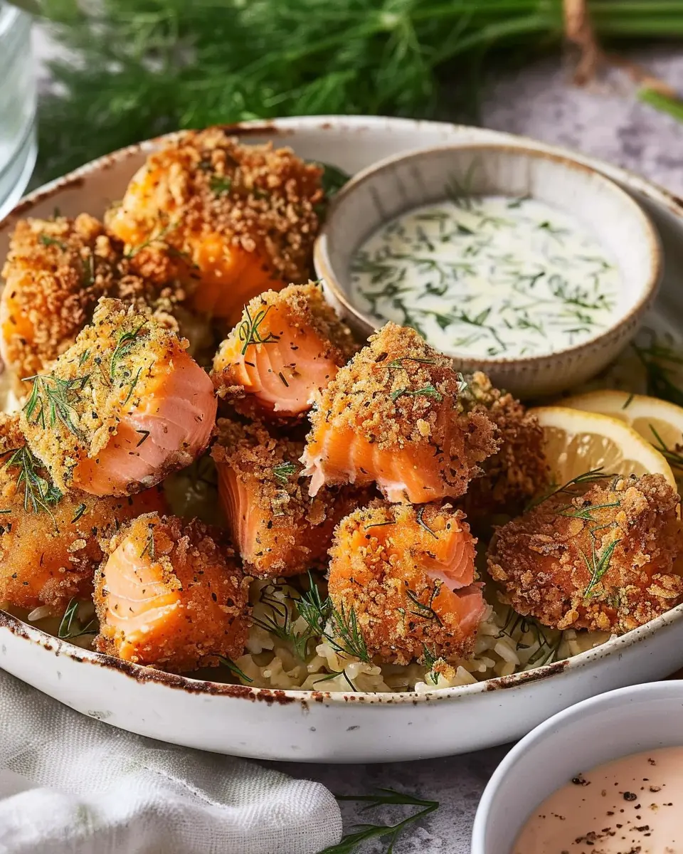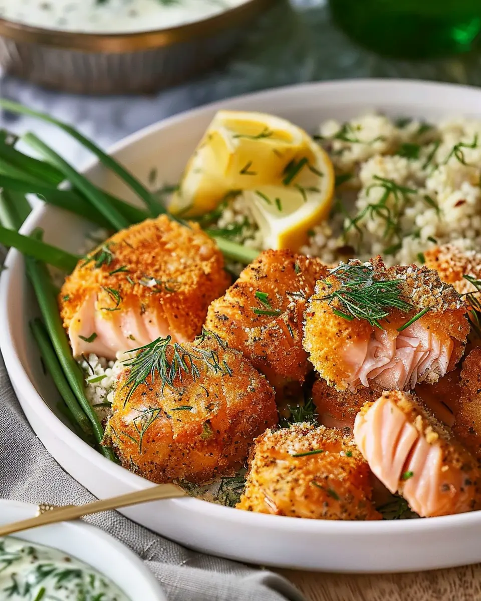 PrintAir Fryer Crispy Salmon Bites with Lemon Dill Sauce Bliss