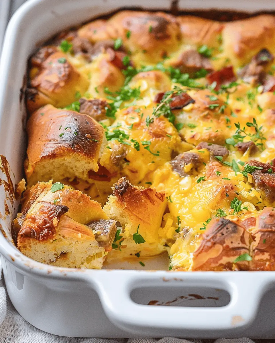 The bagel breakfast casserole is truly a game-changer for anyone looking to simplify their morning routine without sacrificing flavor. Packed with layers of savory turkey bacon, creamy eggs, and delightful cheeses, this dish makes for a warm, satisfying start to any day.