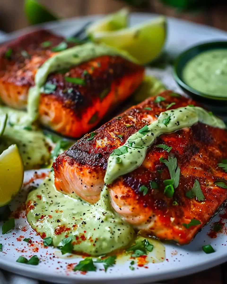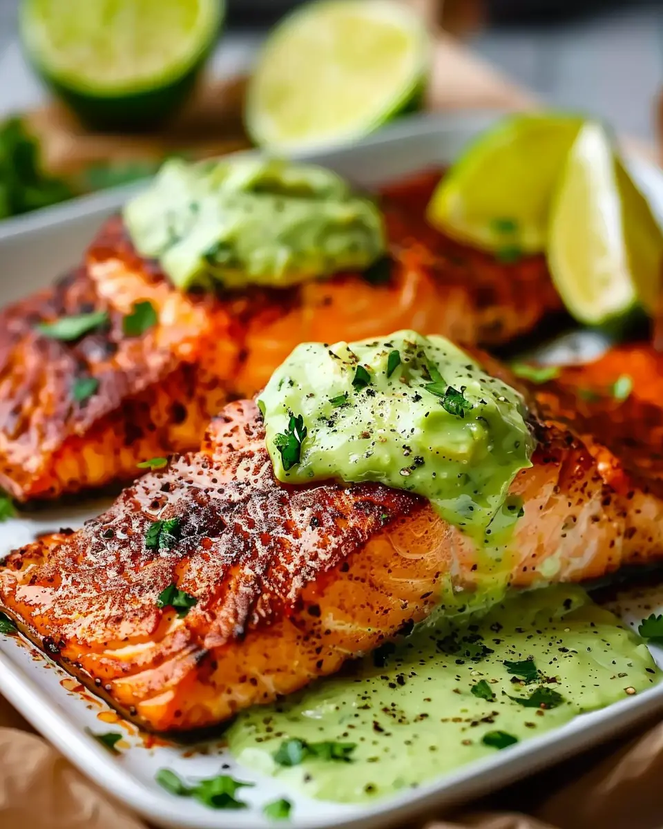 Baked Cajun Salmon with Creamy Avocado Lime Sauce is a quick, flavorful dish that combines the zesty kick of Cajun spices with the creamy, refreshing taste of avocado and lime.