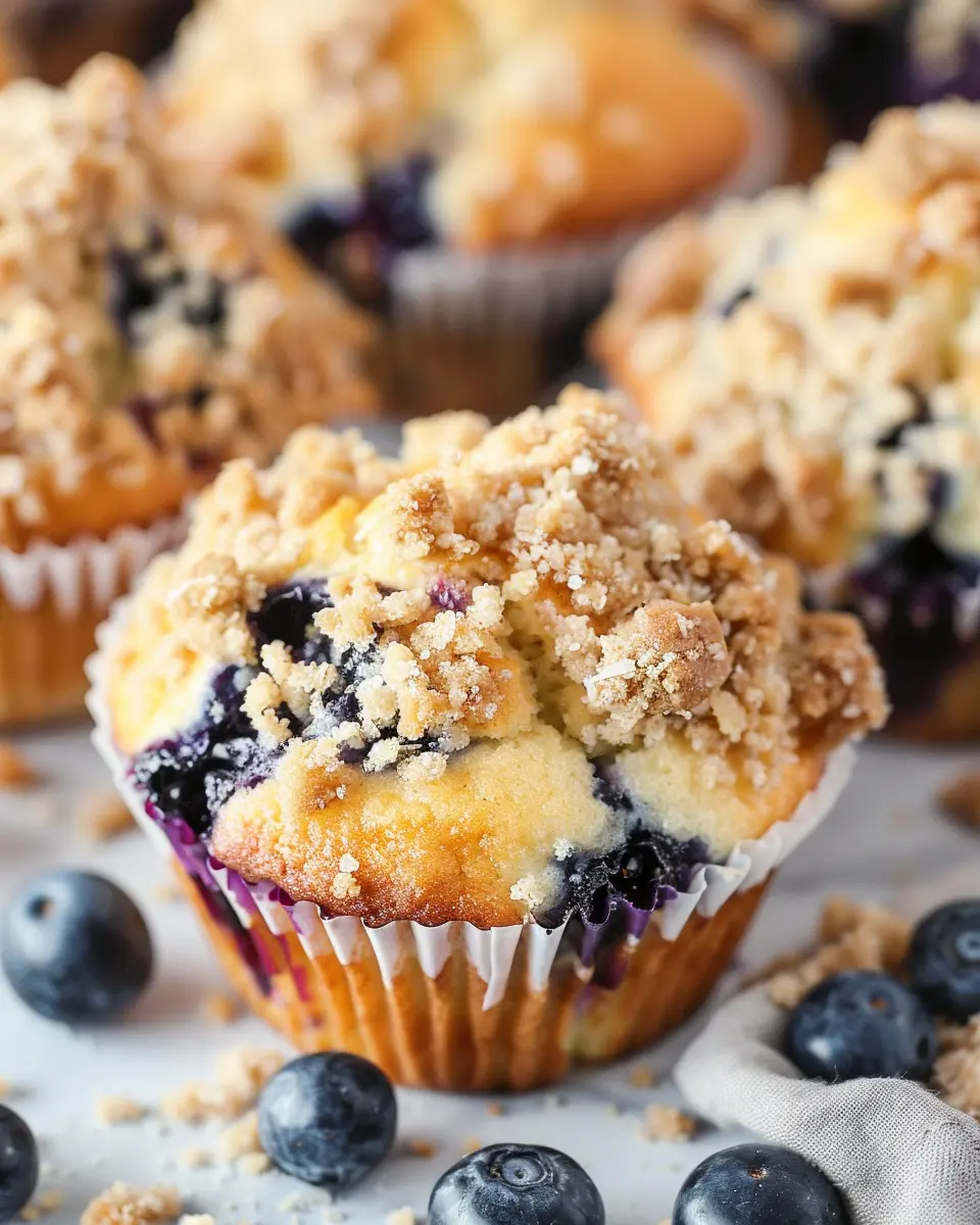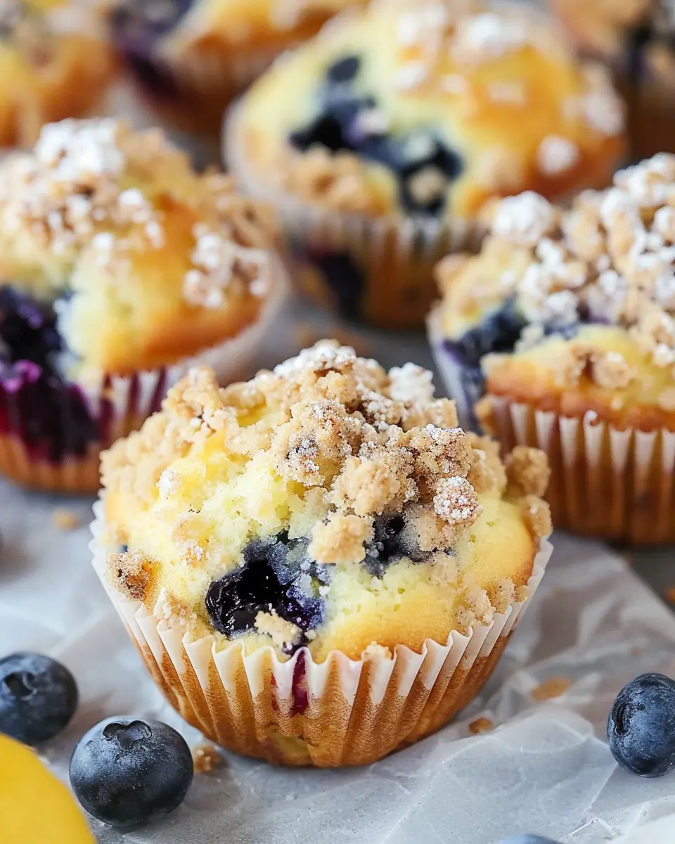 Enjoy a delicious start to your day with these Bakery Style Lemon Blueberry Streusel Muffins, featuring a perfect balance of sweet blueberries and zesty lemon.