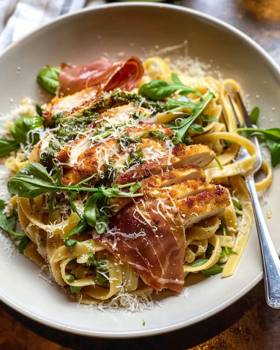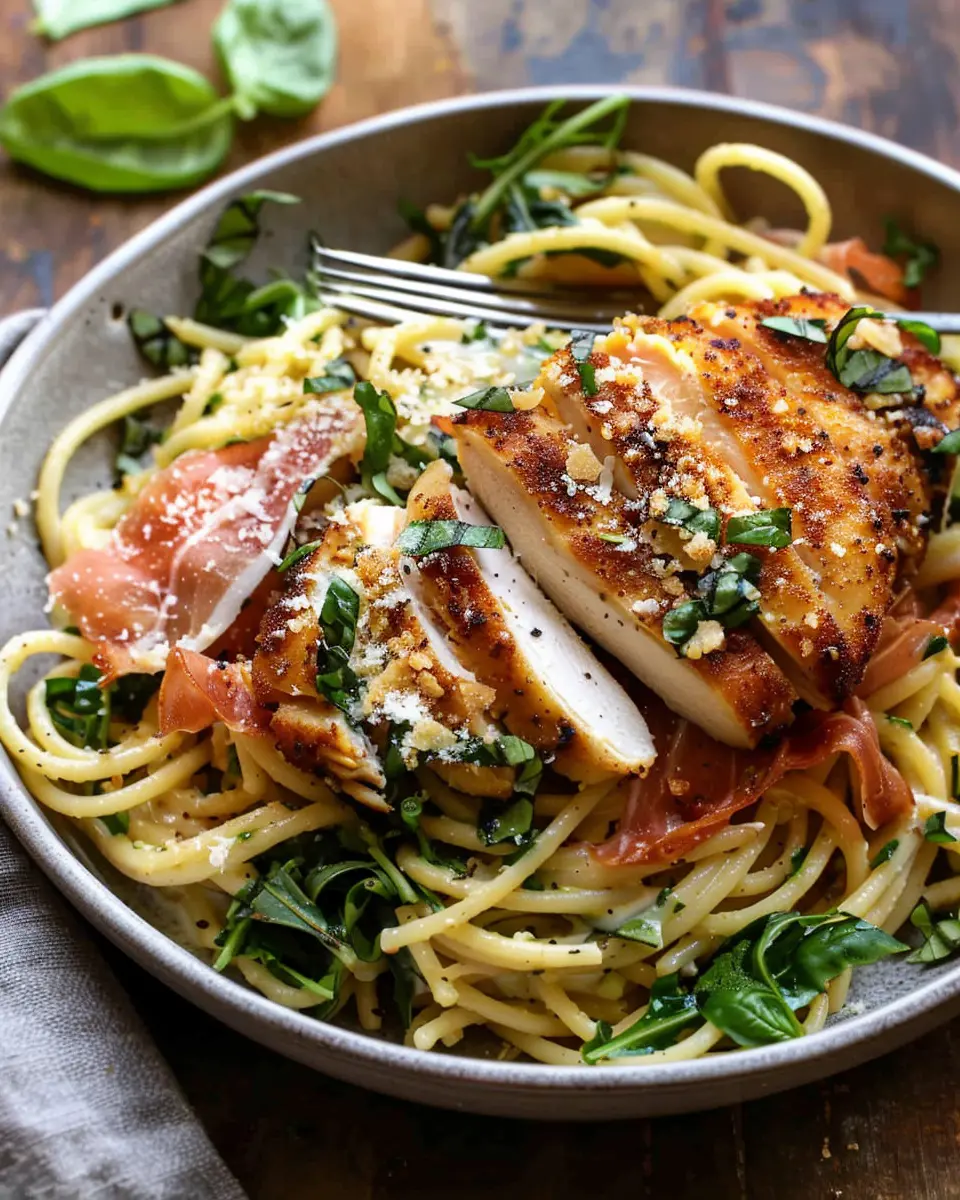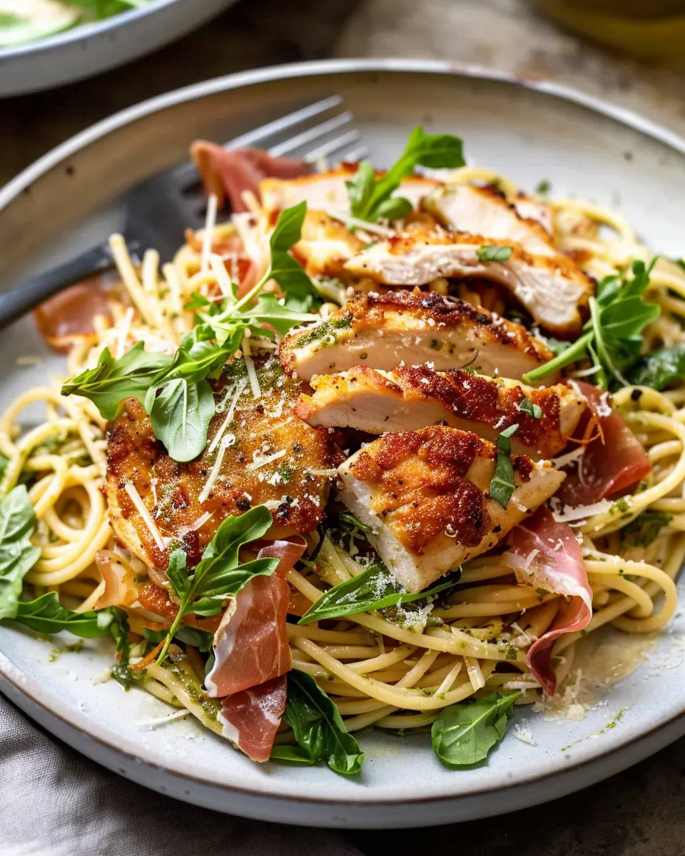 In this Basil Parmesan Pasta with Crispy Chicken, Prosciutto, and Arugula, we’ll showcase how the synergy of each ingredient creates a dish that’s both comforting and sophisticated. So, let’s roll up our sleeves and dive into this delicious culinary adventure together!