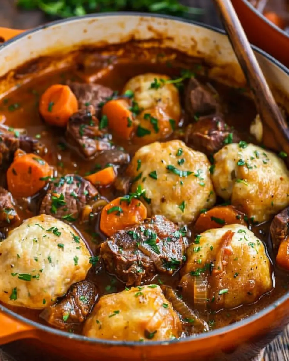 These ingredients come together to create a steaming bowl of beef stew with dumplings that will impress friends and family alike! What’s your go-to twist on traditional recipes? Share in the comments below!