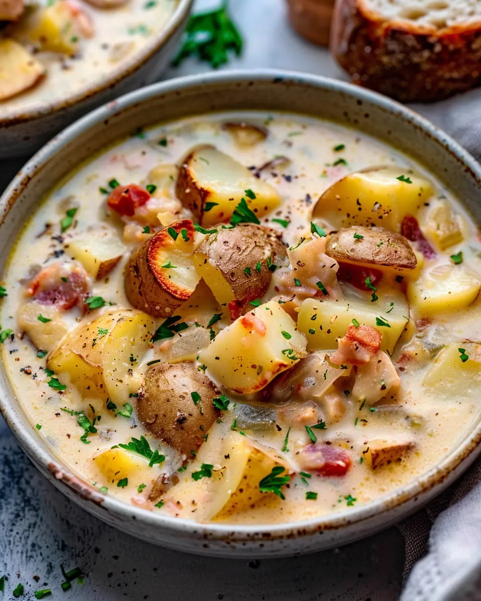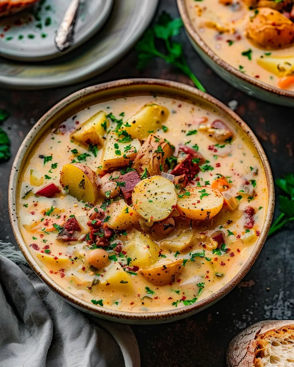 Home » Recipes » Cajun Potato Soup: Easy Comfort with Turkey Bacon and Chicken Ham