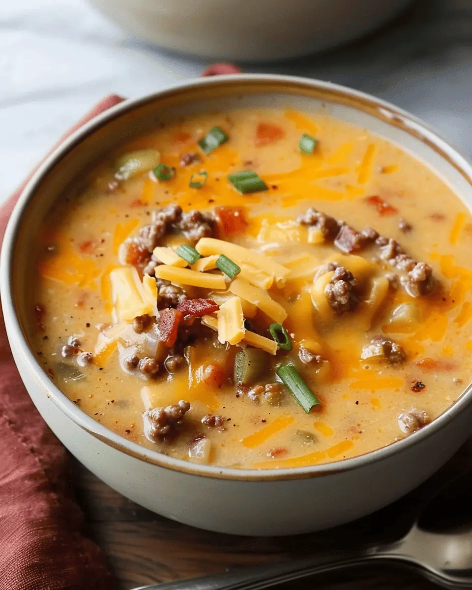 PrintCheeseburger Soup: Easy and Indulgent Comfort in a Bowl
