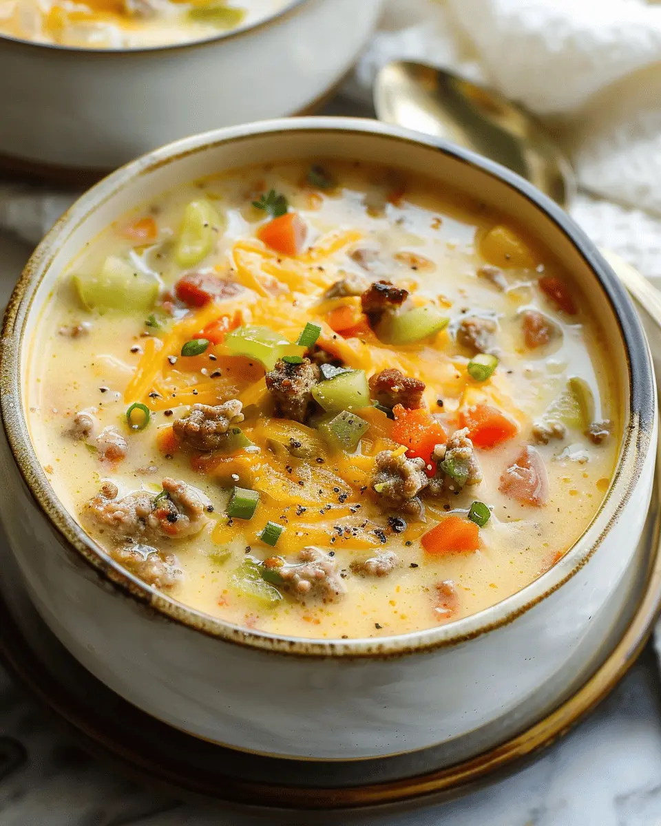 Absolutely! One of the best attributes of cheeseburger soup is that it stores beautifully in the fridge. You can prepare the soup in advance, let it cool, and then transfer it to an airtight container for up to three days. When you’re ready to enjoy it, simply reheat it over medium heat on the stovetop or in the microwave. If you need to freeze it, be aware that dairy can change texture when thawed, so it’s best to add cream or milk just before serving for the creamiest consistency.