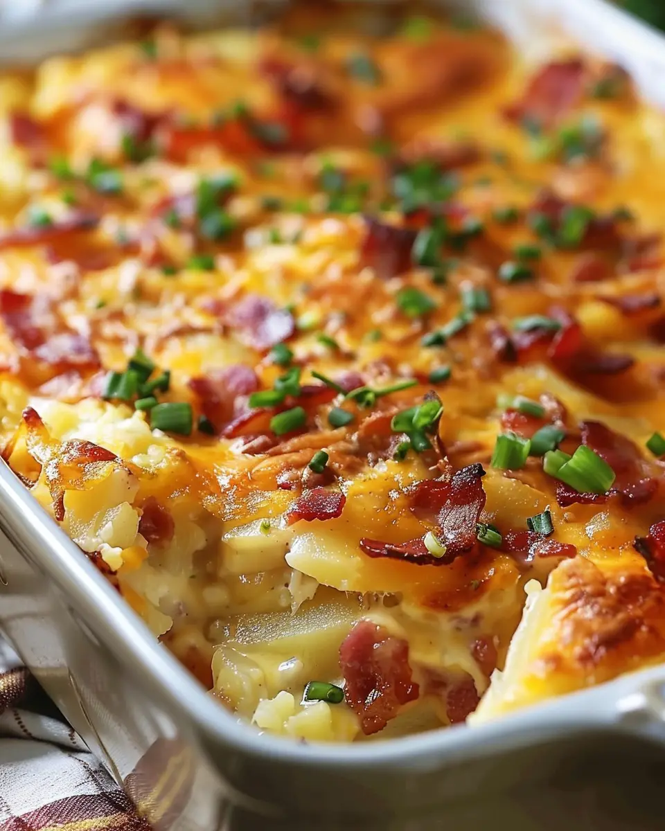 Keywords: Cheesy Bacon and Potato Breakfast Casserole, breakfast casserole, turkey bacon recipe