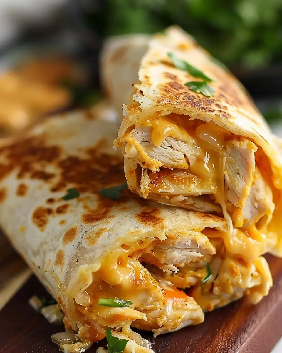 PrintCheesy Garlic Chicken Wraps: Quick and Easy Homemade Delight