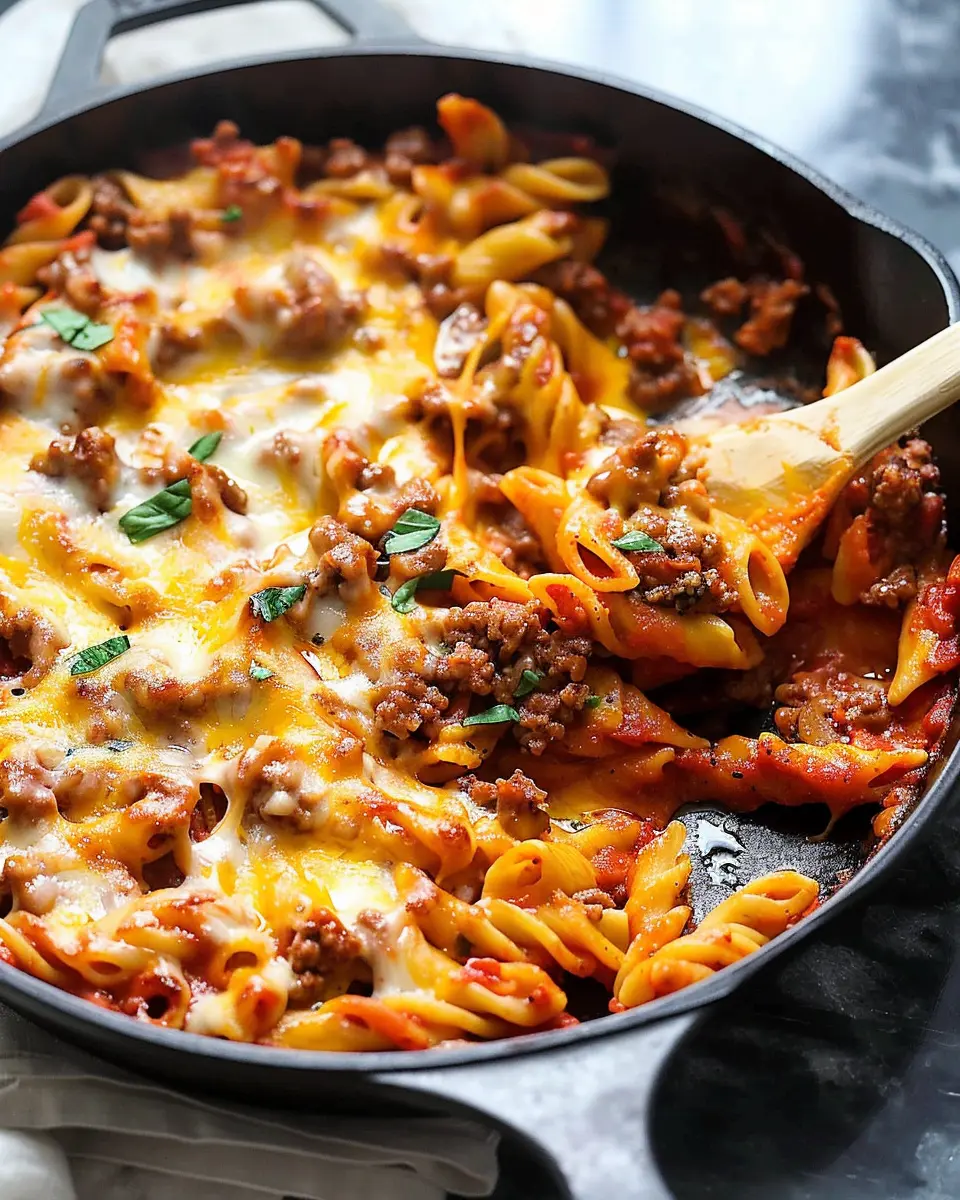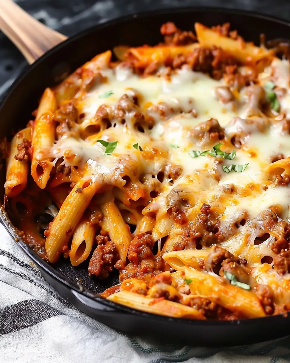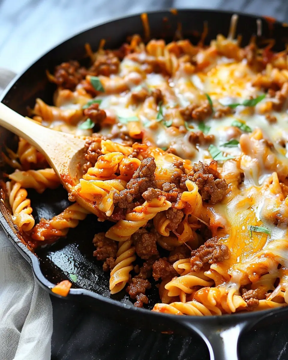 Keywords: Cheesy Ground Beef Skillet Pasta, Comfort Food, Quick Meal