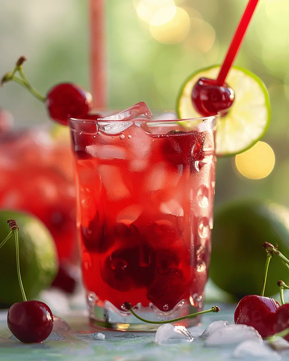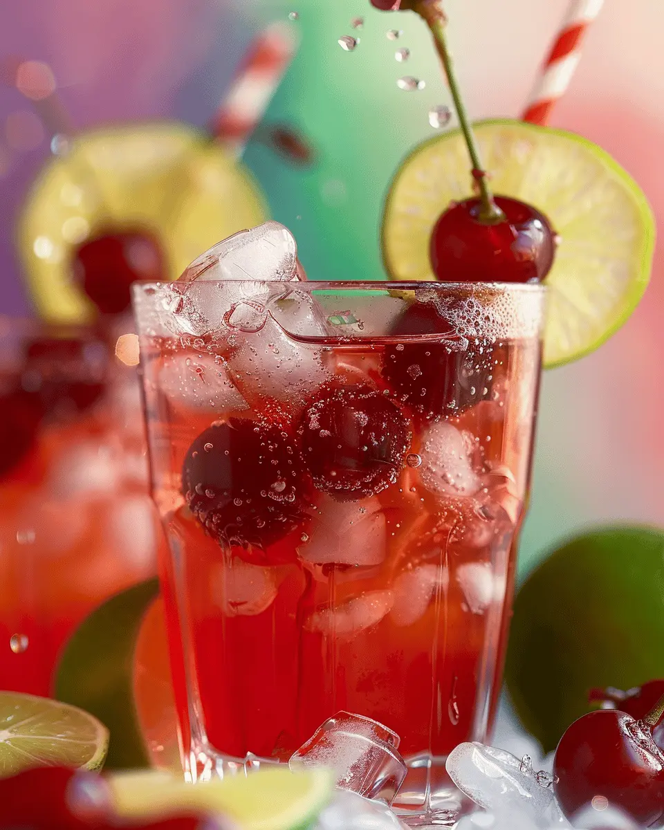 Citrusy Touch: Garnish your Cherry Limeade Splash with lime wedges or cherries on the rim of your glass. This not only looks appealing but offers an extra burst of flavor with each sip.