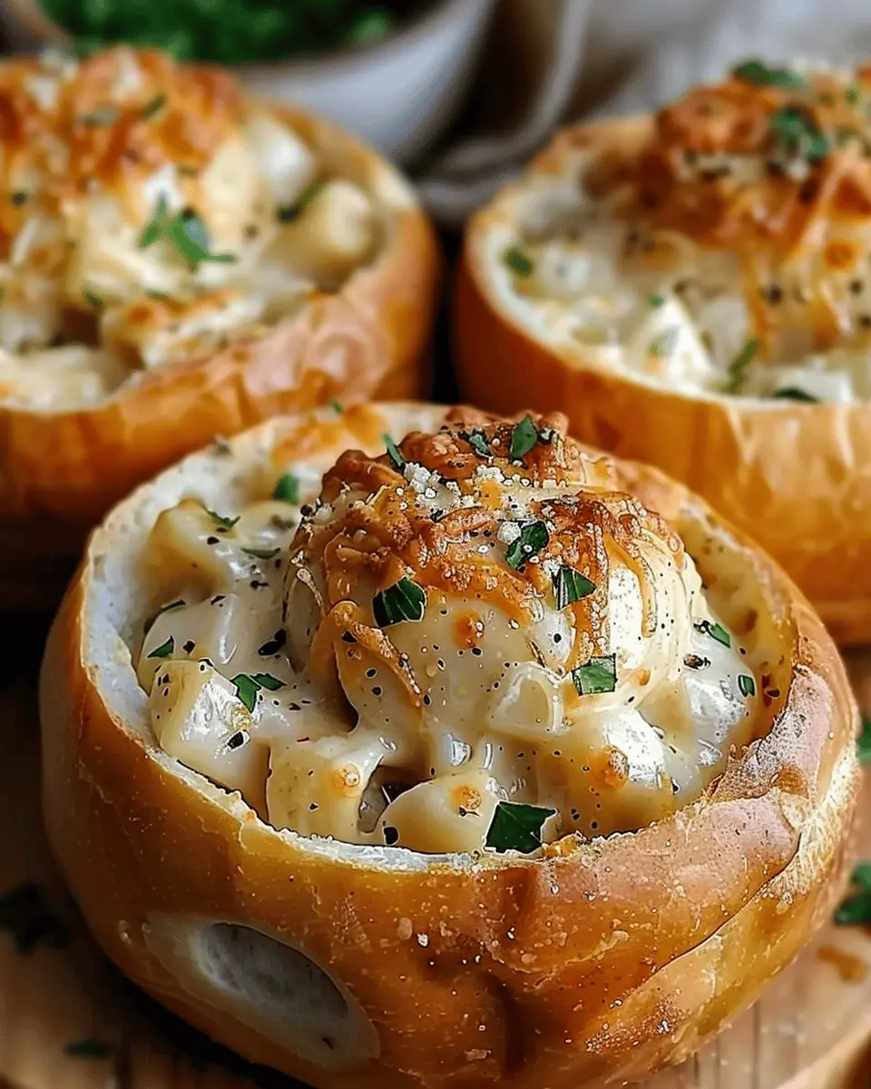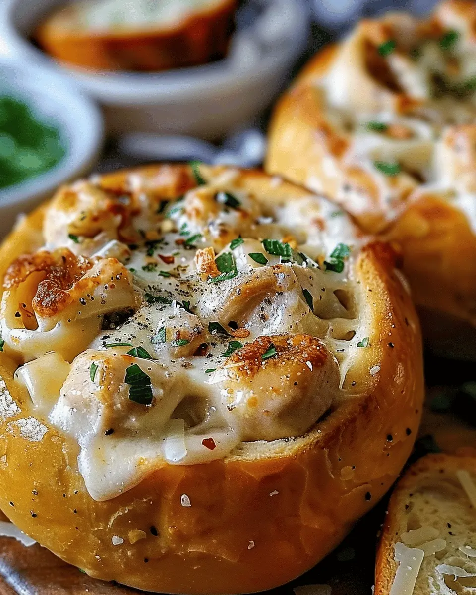 At their core, Chicken Alfredo Garlic Bread Bowls are a delightful fusion of two favorites: classic chicken Alfredo and the beloved garlic bread. The concept is simple yet genius: the bread bowl serves as both a vessel and a side, soaking up all that delicious Alfredo sauce while providing a crunchy texture that perfectly contrasts the creamy pasta inside.