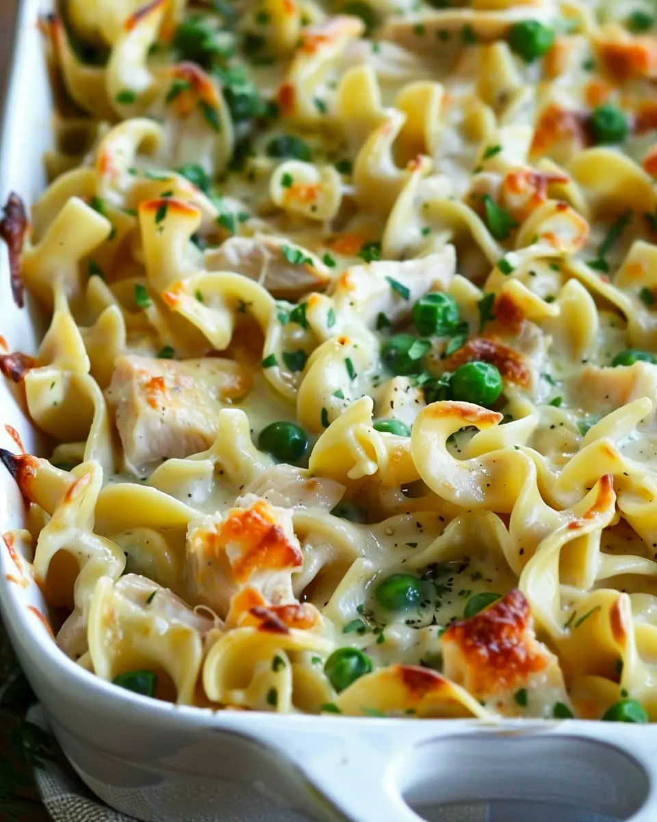 Once golden and bubbling, remove your Chicken Noodle Casserole from the oven. Let it cool for a few minutes before serving. This dish makes excellent leftovers, so feel free to save some for tomorrow!