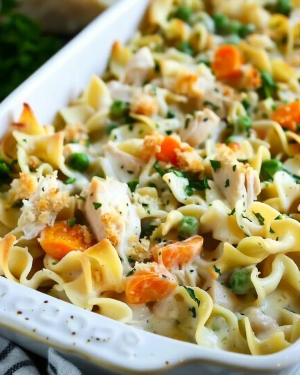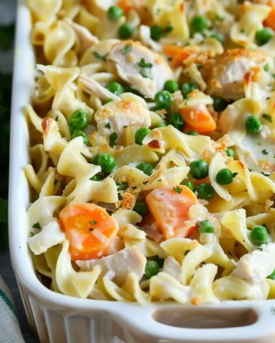 Enjoy this comforting Chicken Noodle Casserole, perfect for family gatherings and made deliciously with turkey bacon.