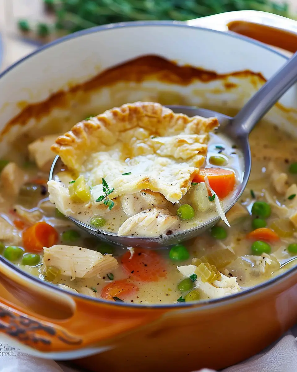 A creamy and hearty soup that brings the classic flavors of chicken pot pie to a cozy bowl.