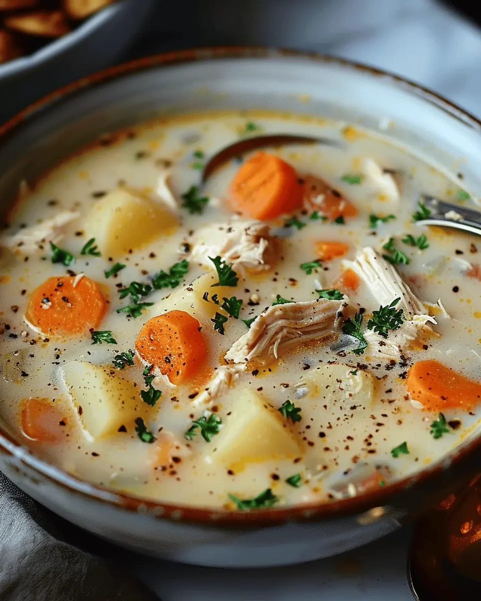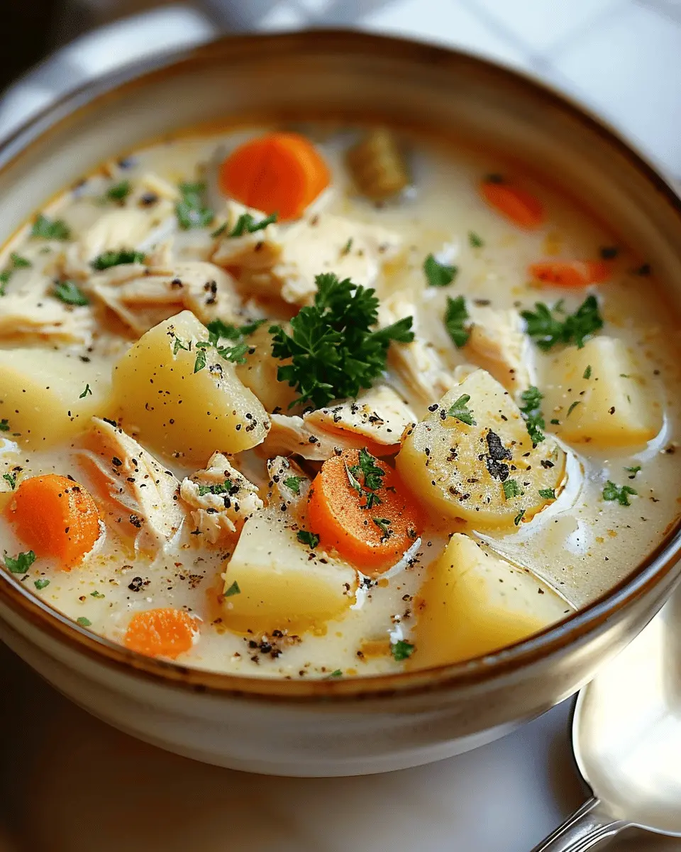 And there you have it, your delightful Chicken Potato Soup is ready to enjoy. Serve it hot with some crusty bread on the side for an extra touch.