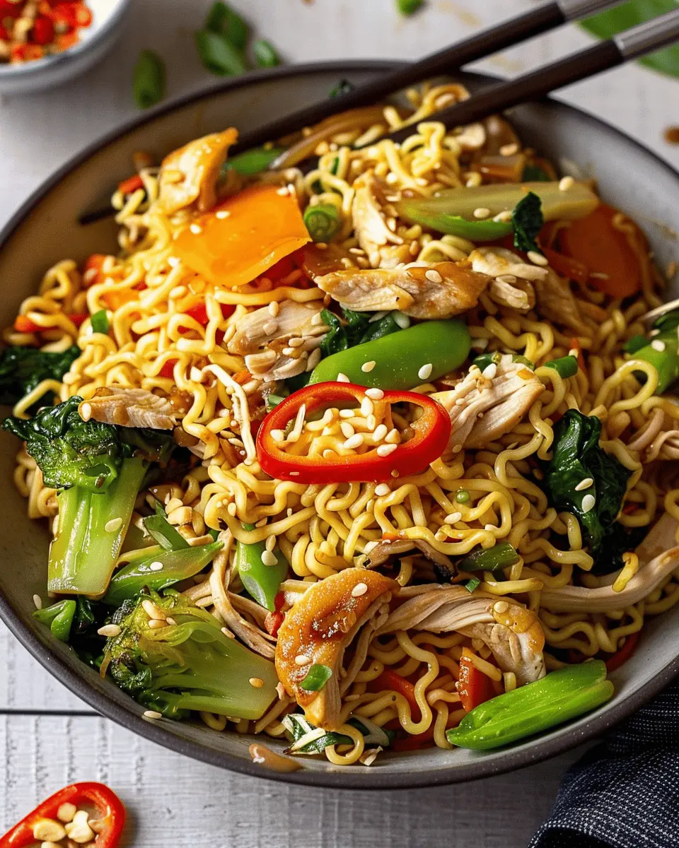 PrintChicken Ramen Stir Fry: Easy Comfort Food with Turkey Bacon Twist