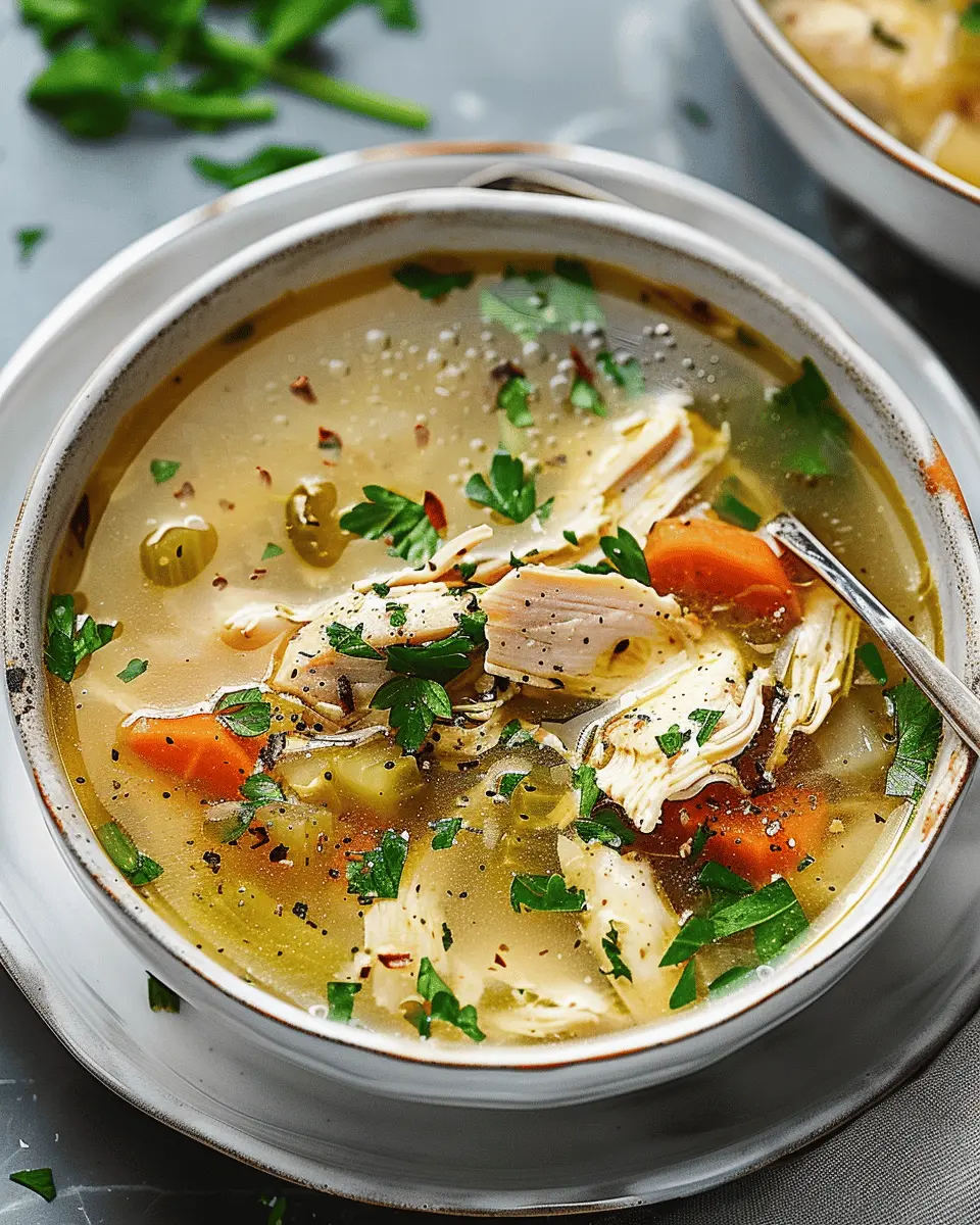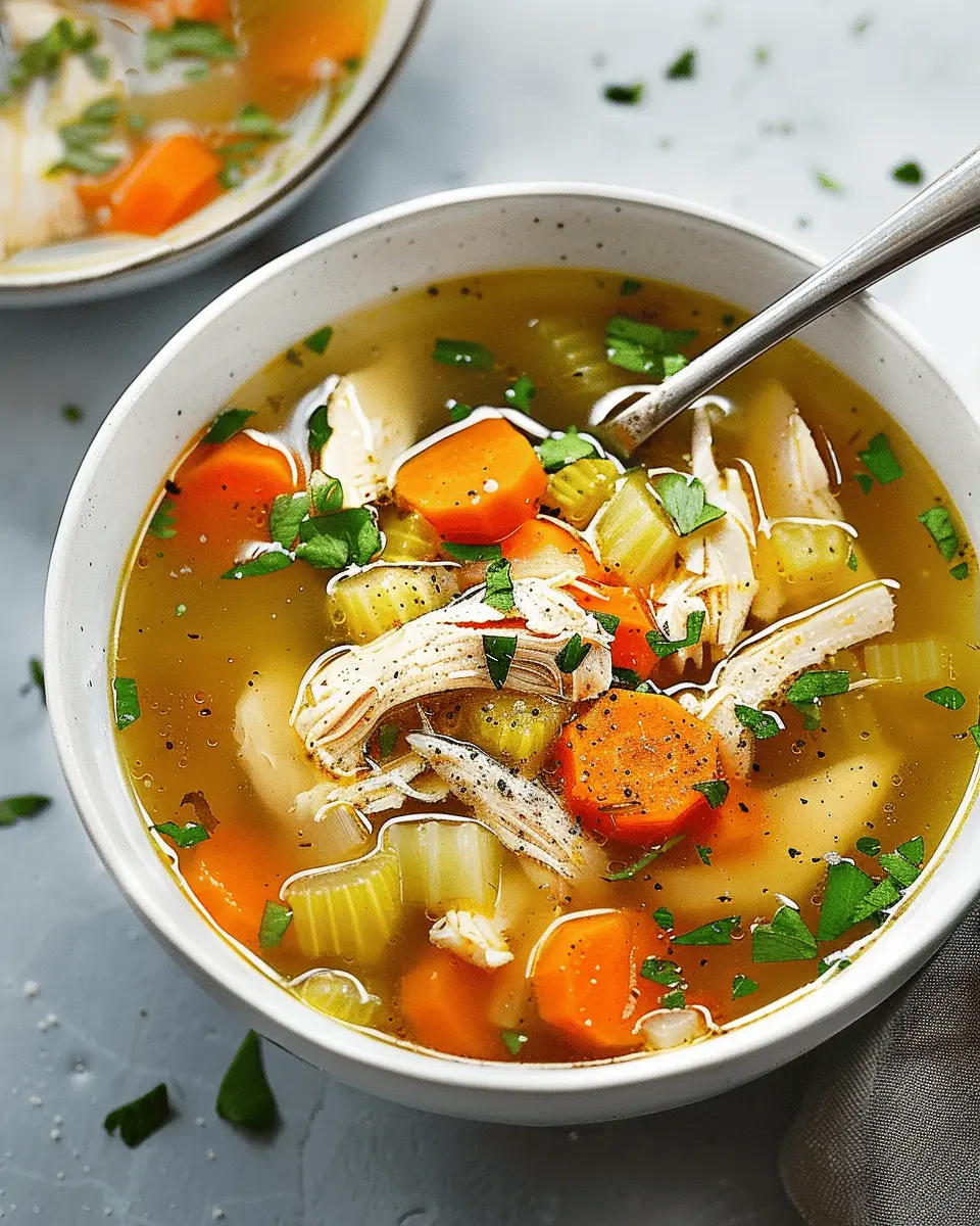 And there you have it, your warm, comforting bowl of chicken soup is ready to be enjoyed! Whether you’re indulging on a cozy night in or sharing with friends and family, this recipe offers a nutritious and delightful meal that’s sure to please. Plus, it’s quite forgiving—so feel free to experiment with different vegetables or spices based on your preferences. Happy cooking!