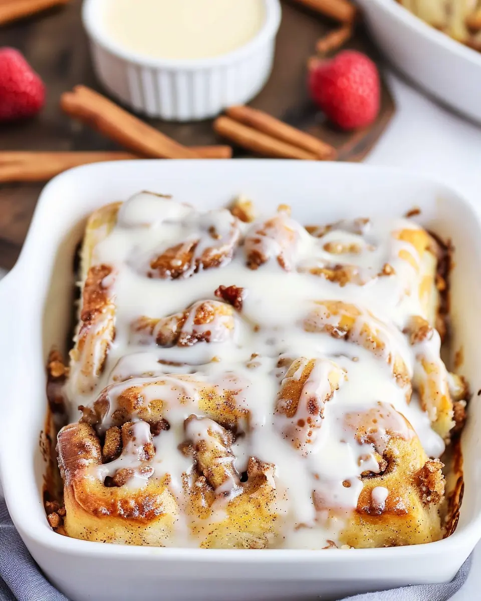 The beauty of cinnamon roll casserole lies in its versatility! Drizzle a simple glaze made from powdered sugar and milk for an extra touch of sweetness. Chopped nuts, like pecans or walnuts, add a delightful crunch and depth to the dish. You can also sprinkle fresh berries on top for a burst of color and flavor.