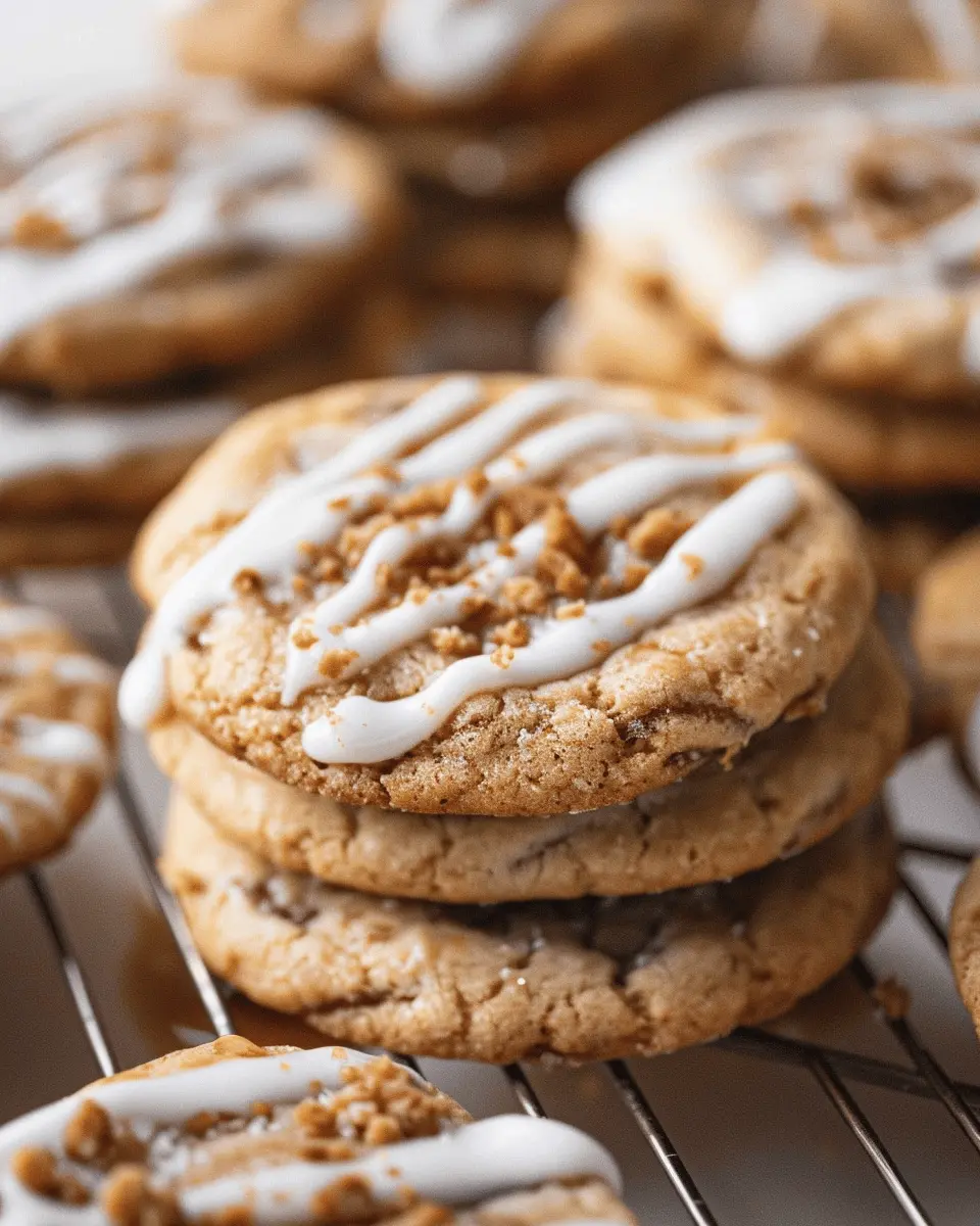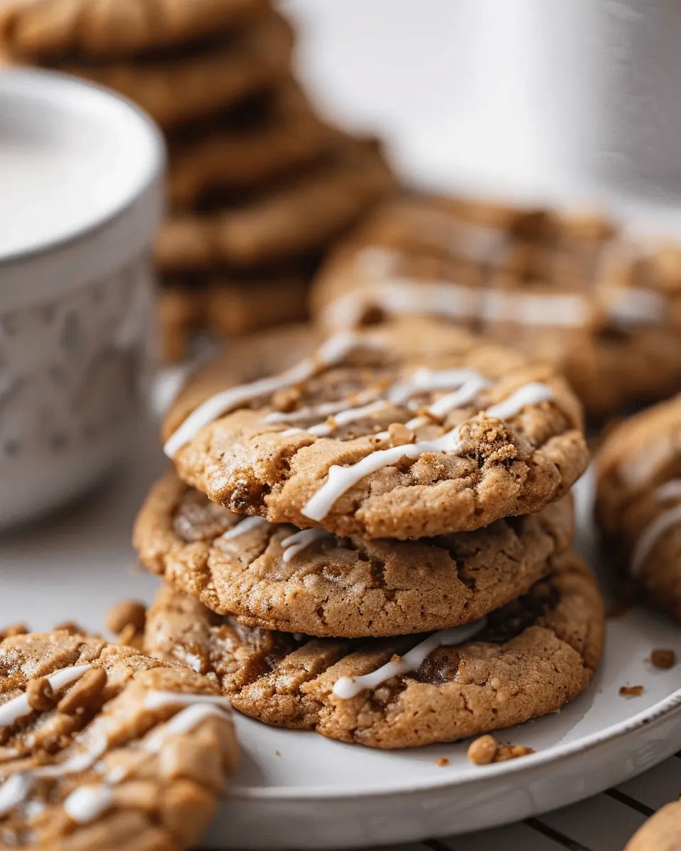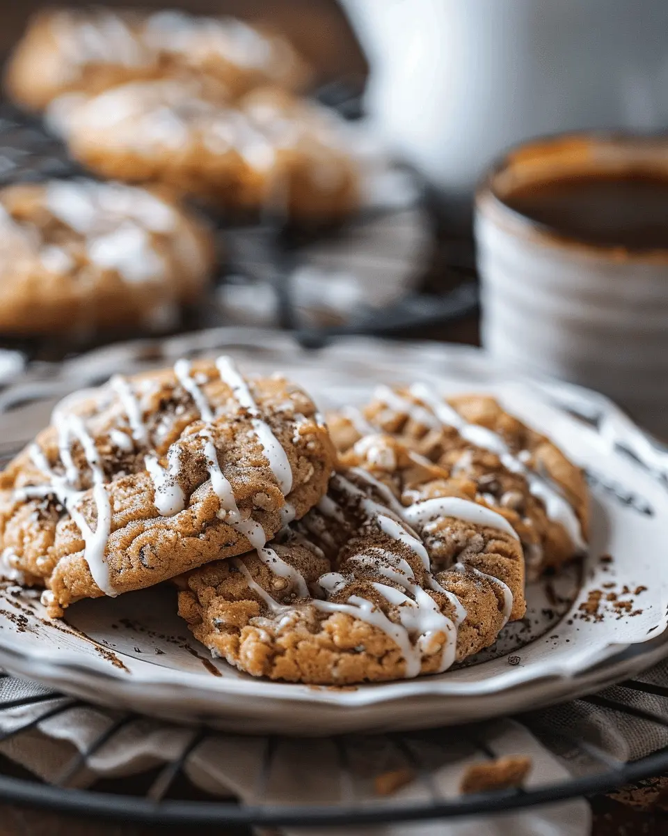 Whisk until smooth and drizzly. Once the cookies have cooled for a few minutes on the baking sheet, drizzle the icing over the top. This extra step adds a lovely sweetness that ties the whole cookie together.