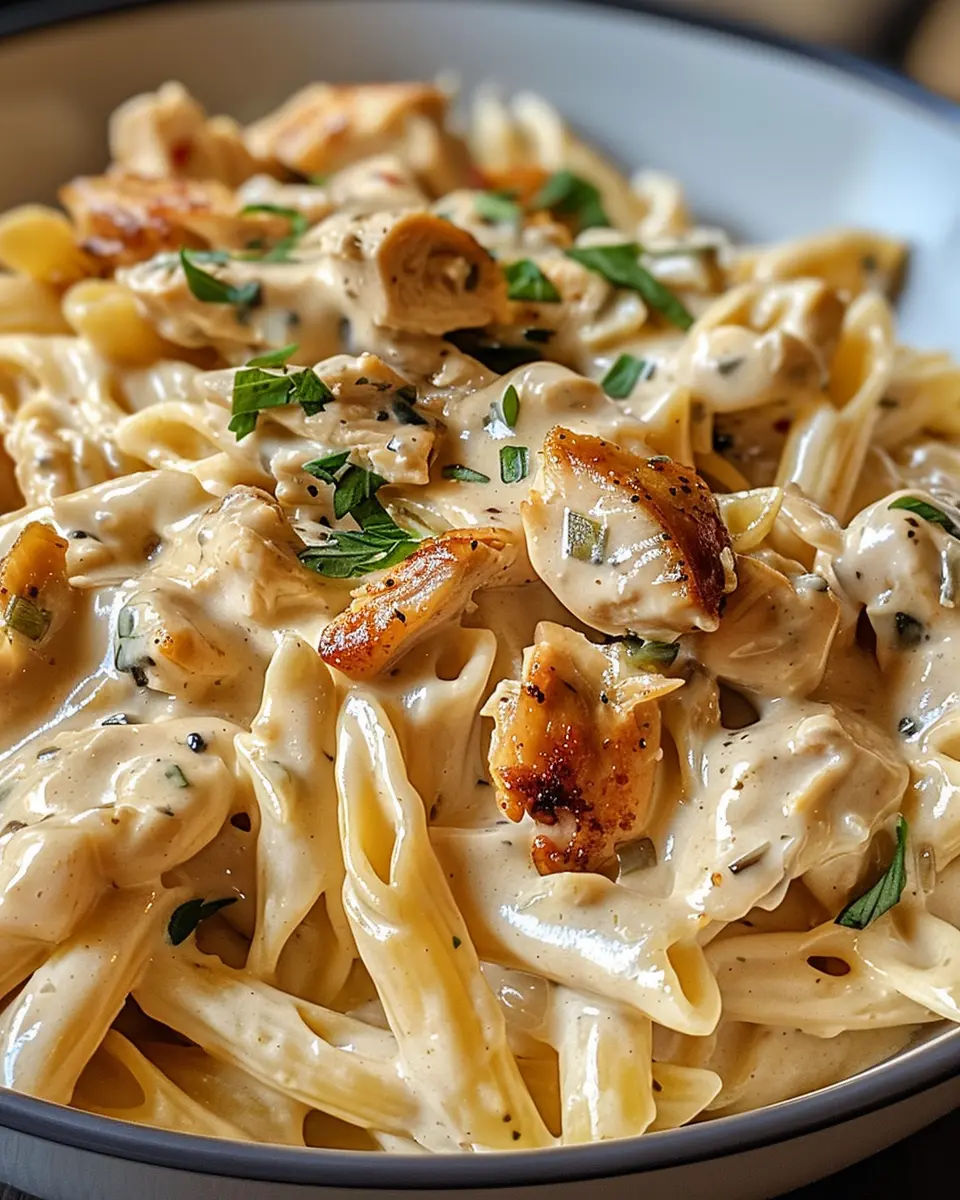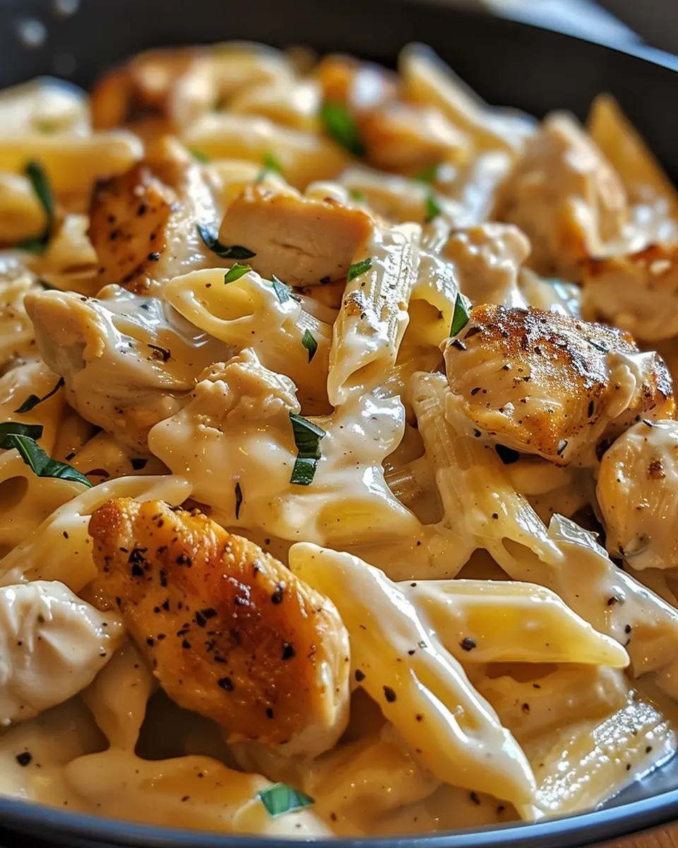 Once you’re all set, it typically takes around 20–25 minutes to bring your dish to life. This includes sautéing your chicken, boiling the pasta, and putting together that lusciously creamy sauce.