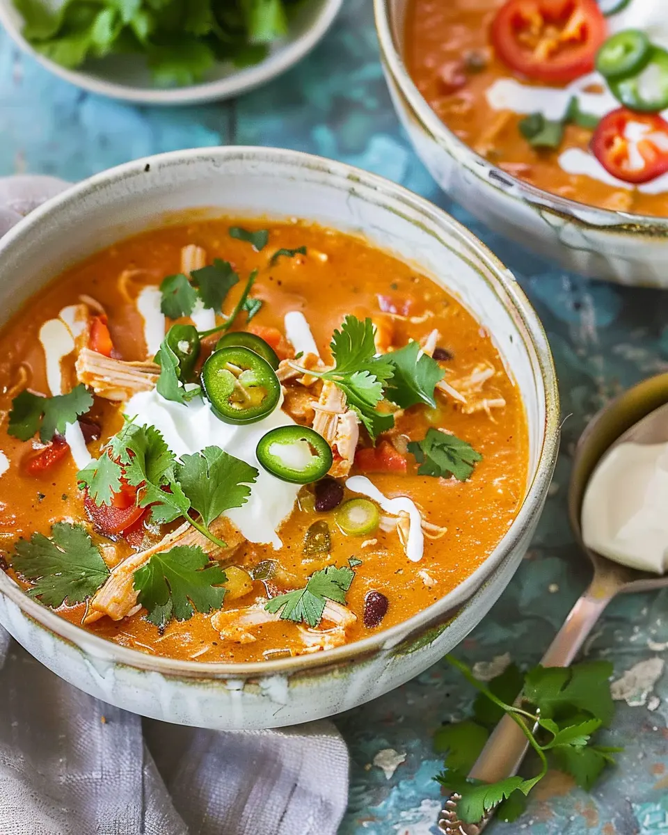 To elevate your dish, don’t forget to garnish! A sprinkle of fresh cilantro, a squeeze of lime juice, or crushed tortilla chips can bring a delightful crunch and brightness to your creamy chicken enchilada soup. If you’re feeling fancy, top it off with a dollop of sour cream or a drizzle of crema.