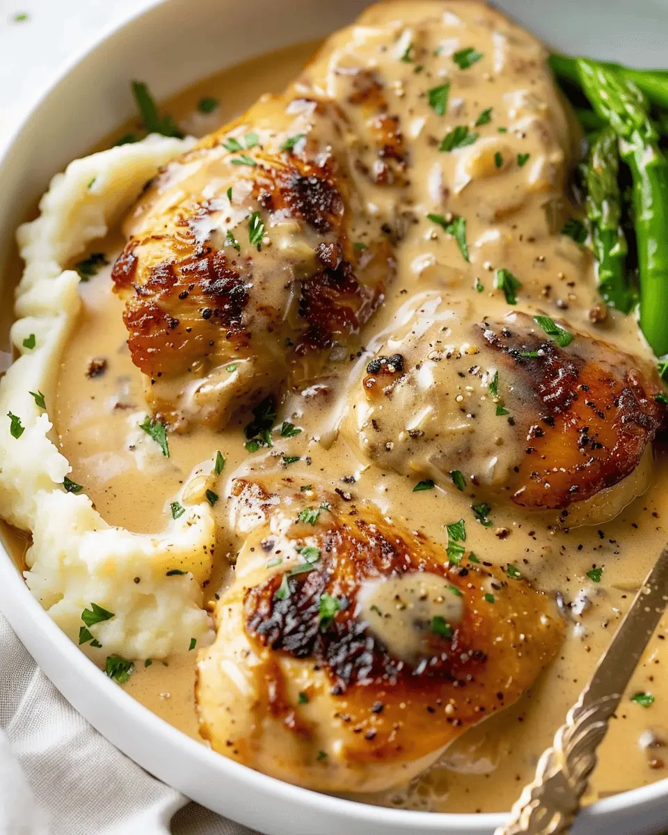 • Cooking Time: Sear the chicken for 6-8 minutes on each side, or until golden brown and cooked through. Use a meat thermometer to ensure the internal temperature reaches 165°F (75°C).