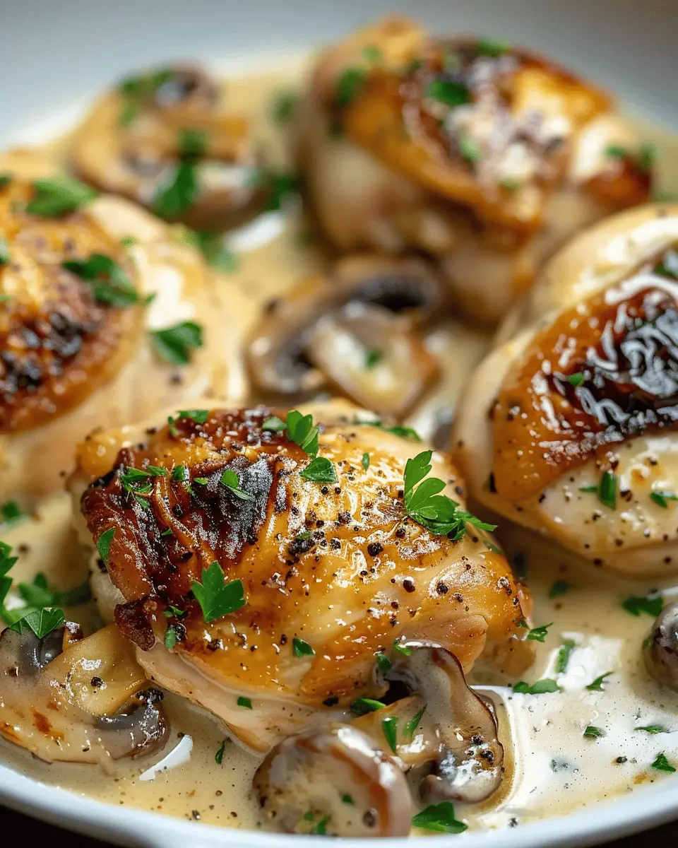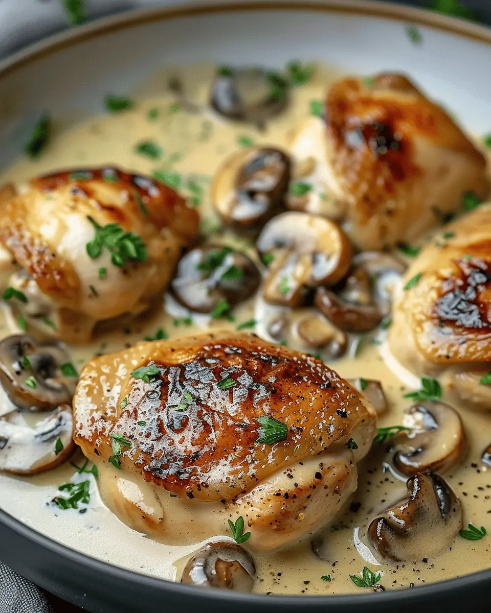PrintCreamy Garlic Mushroom Chicken Thighs: Indulge in Comfort Food