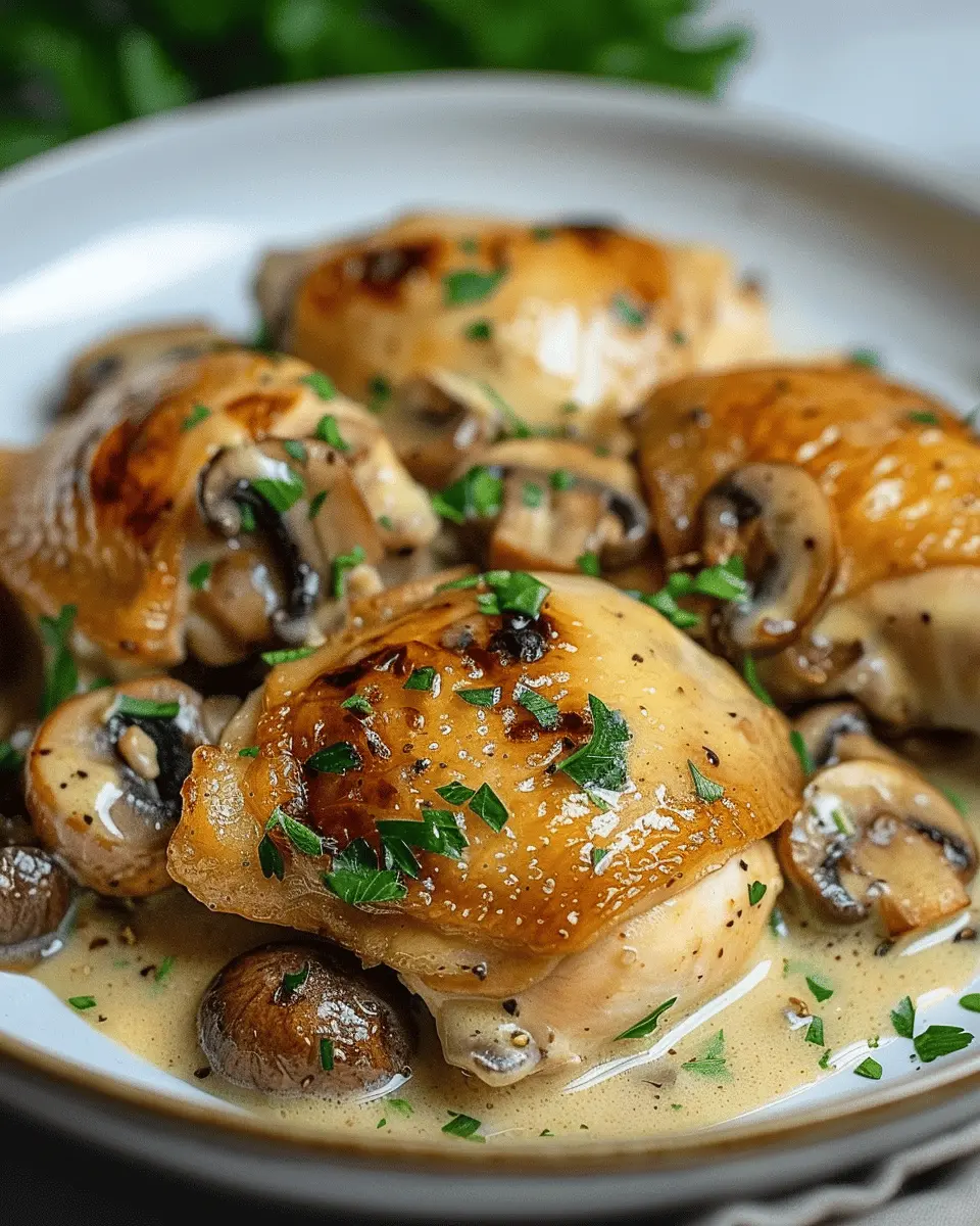 Step-by-Step Preparation of Creamy Garlic Mushroom Chicken Thighs
