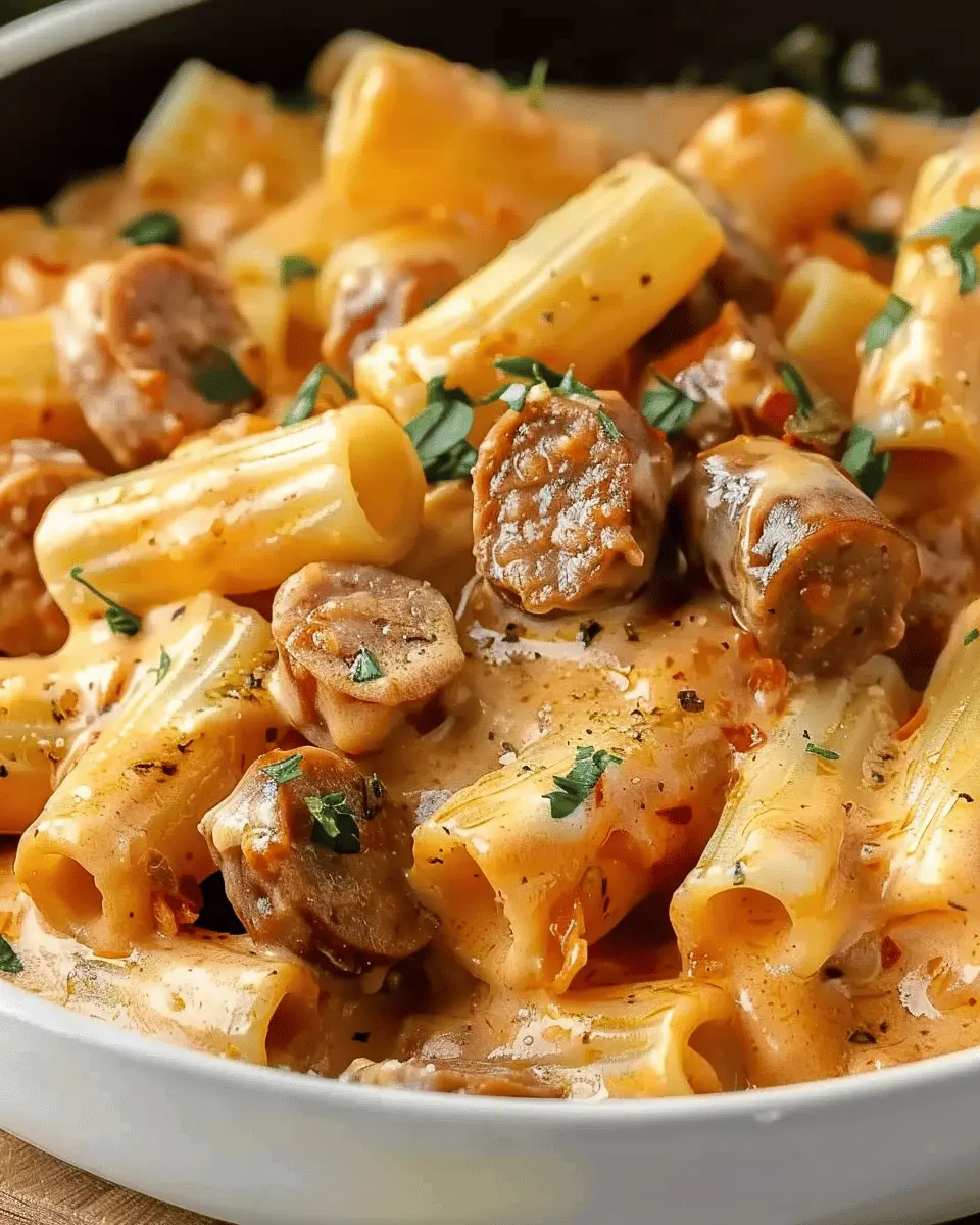 A delicious and creamy pasta dish that combines the flavors of Italian sausage with rigatoni in a comforting sauce.