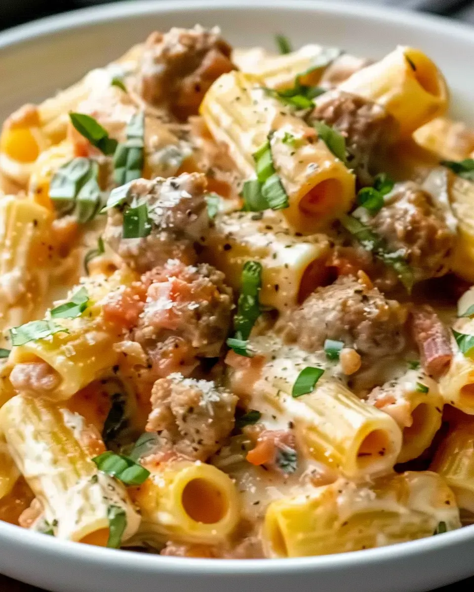 A rich and comforting pasta dish with creamy sauce and savory sausage.