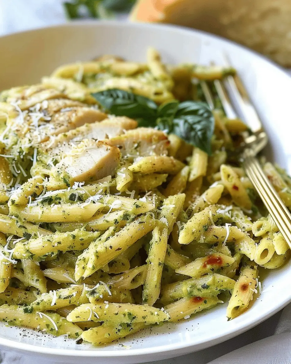 - Instructions: Sauté slices of seasoned chicken breast until cooked through, then toss in fresh spinach until wilted. Combine with your creamy pesto sauce and pasta.