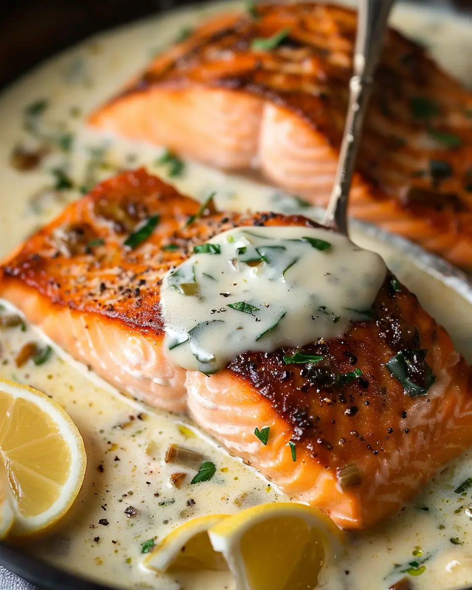 Once you’re all set, the cooking time is approximately 20–25 minutes. This includes searing the salmon and whipping up that delightful creamy sauce. It’s the perfect amount of time to let the flavors meld while you prepare a simple side to complement your meal.