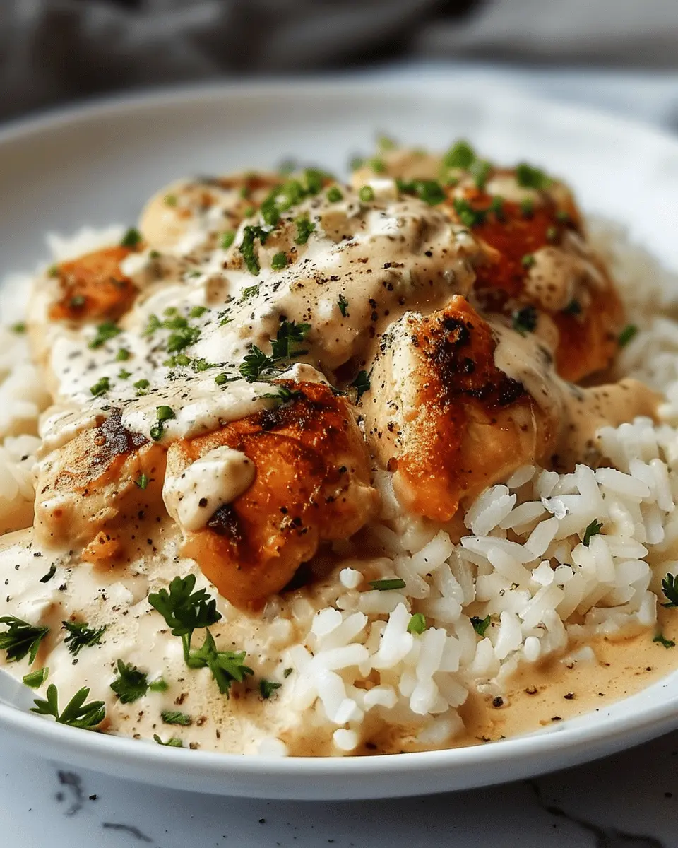 PrintCreamy Smothered Chicken with Rice: Indulgent Flavor Awaits