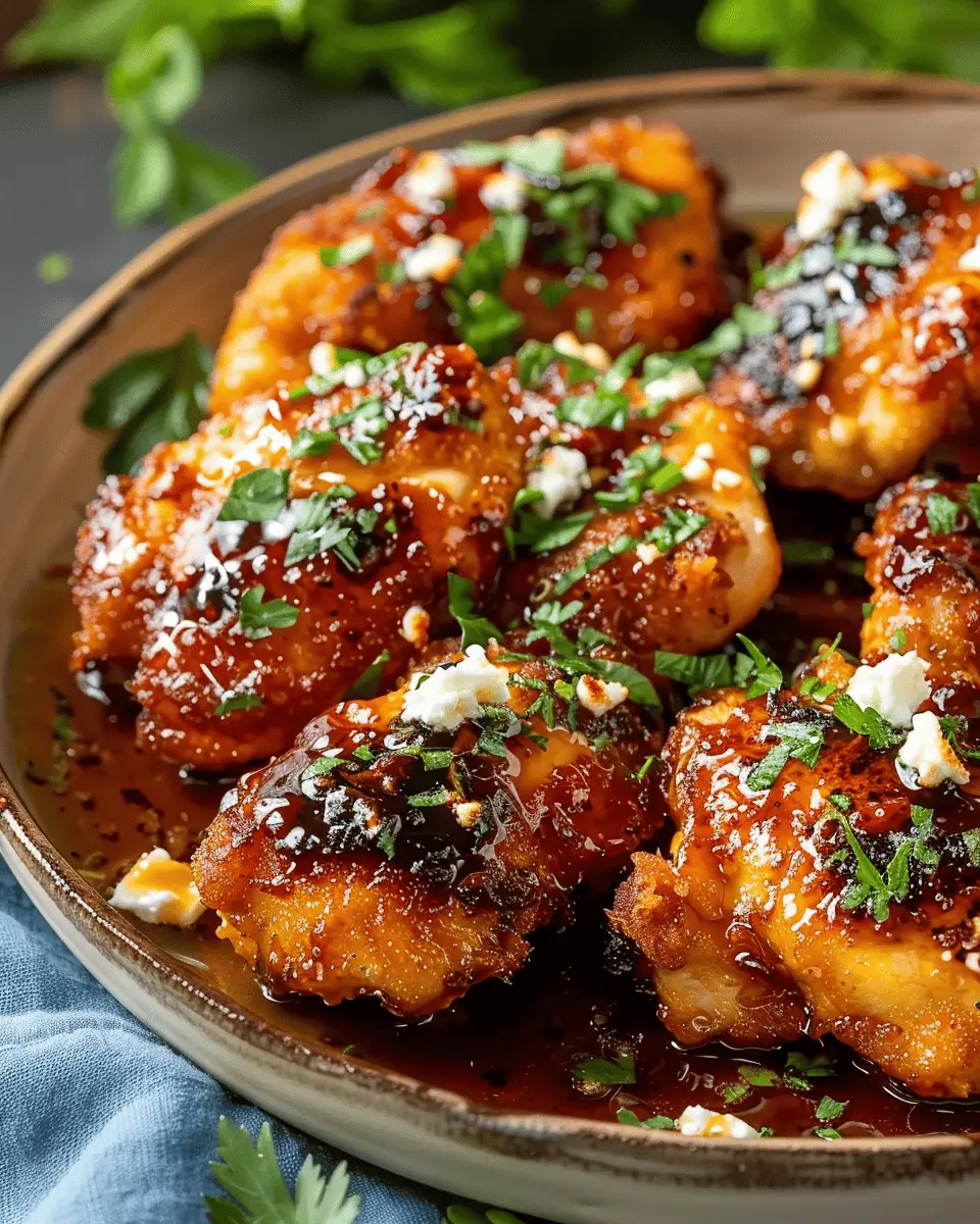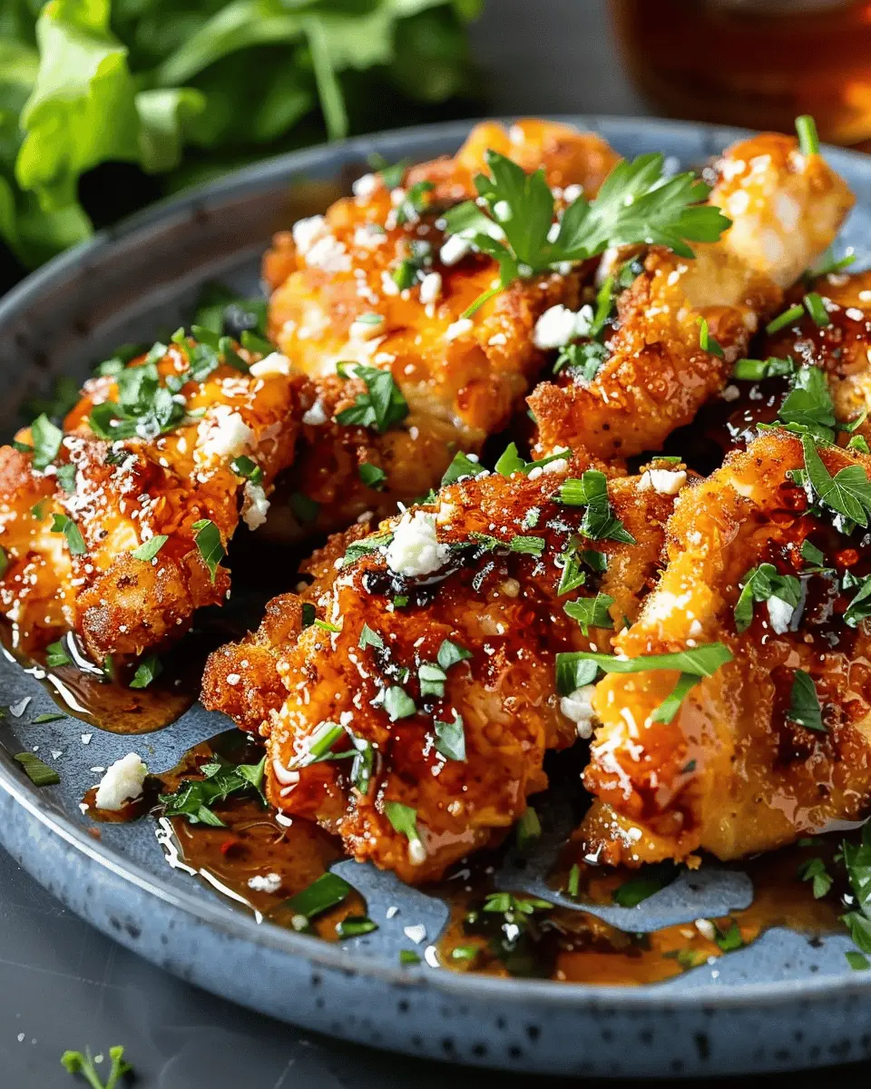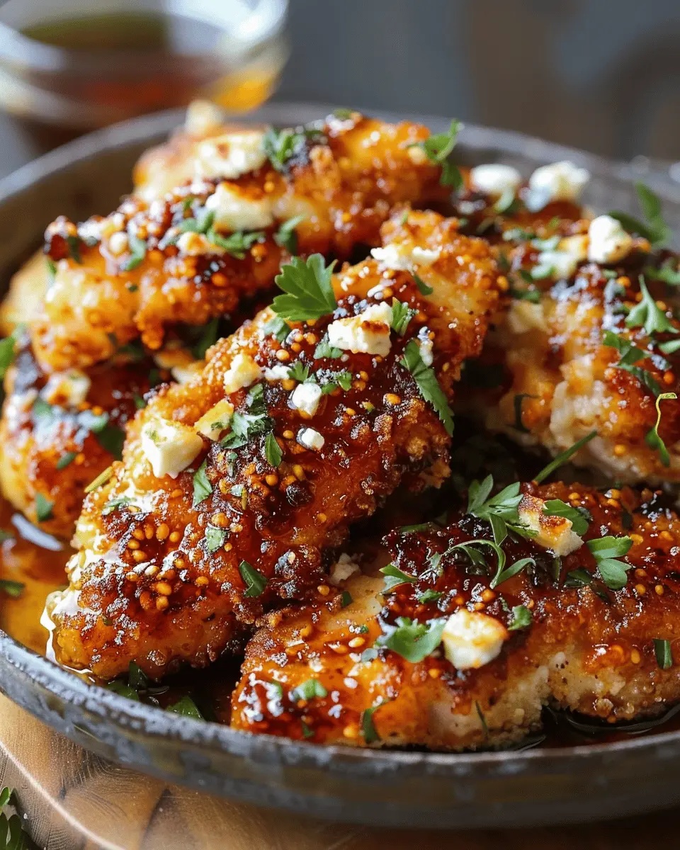 • When it comes to preparing a meal that’s both effortless and impressive, this dish stands out. Imagine biting into juicy chicken, where each piece is perfectly crispy and then brought to life with a drizzling of hot honey and crumbled feta. The sweet heat combo elevates the dish in a way that’s both comforting and sophisticated.