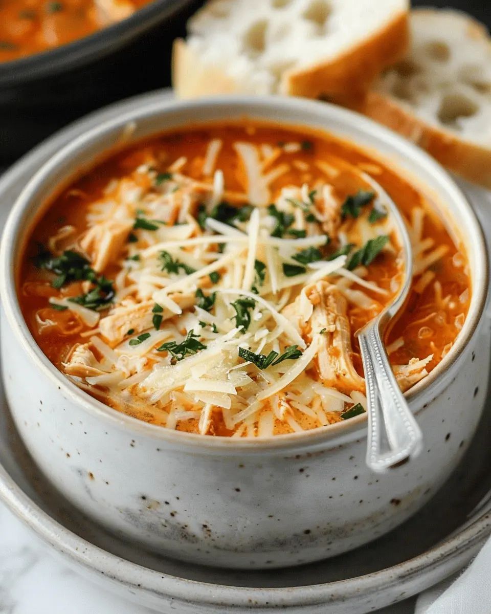 PrintCrockpot Chicken Parmesan Soup: Easy, Comforting Family Meal