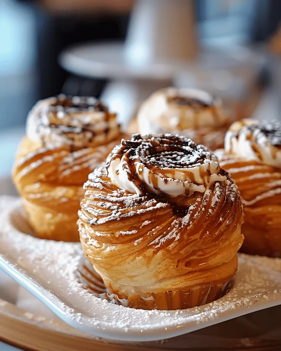 Finally, place your cruffins in the oven and bake for 20–25 minutes until they are beautifully golden. The aroma that fills your kitchen will be irresistible! Once out of the oven, allow them to cool slightly before indulging.
