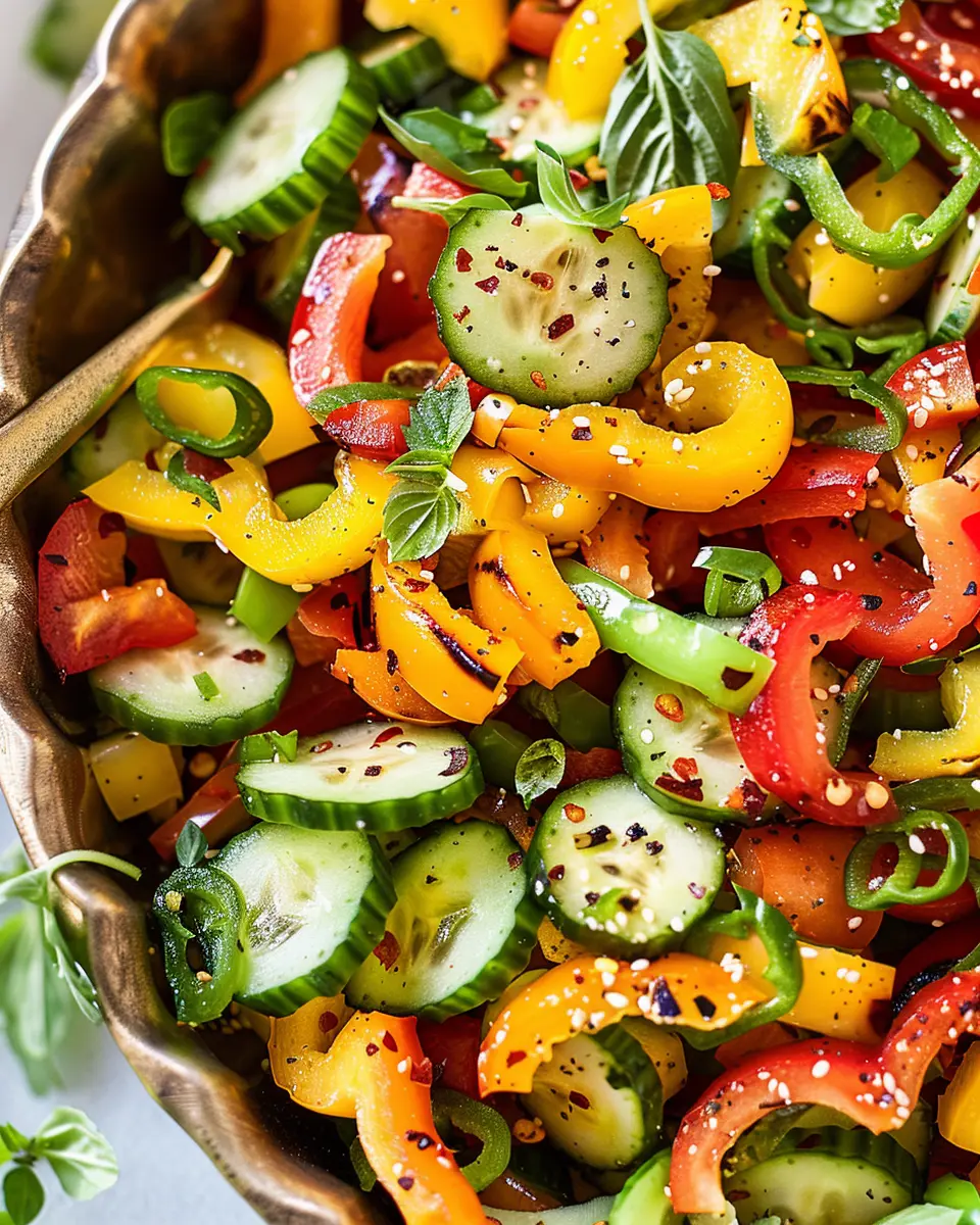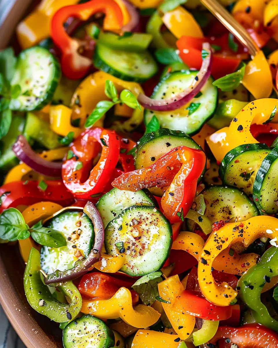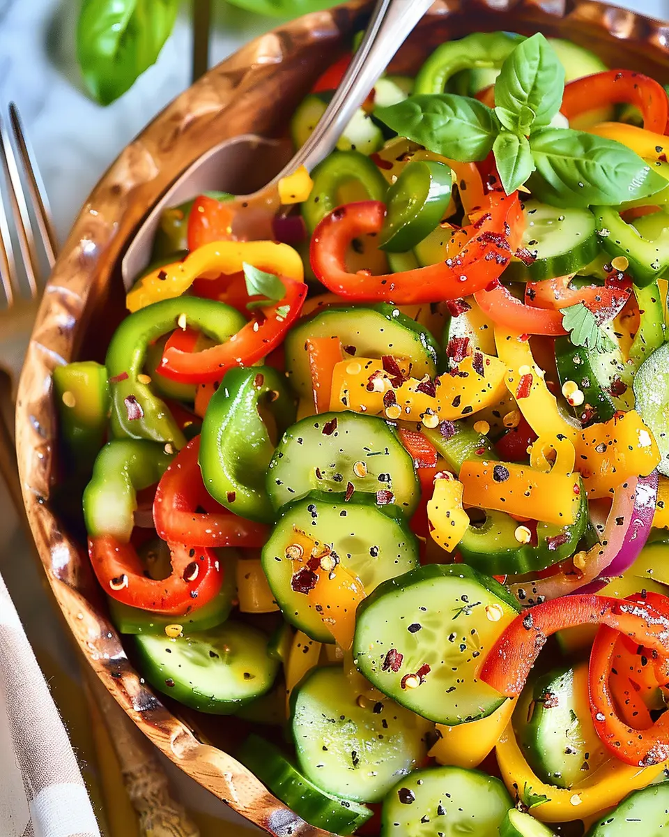 Are you ready to whip up a fresh and colorful Cucumber and Bell Pepper Salad? Here’s what you’ll need: