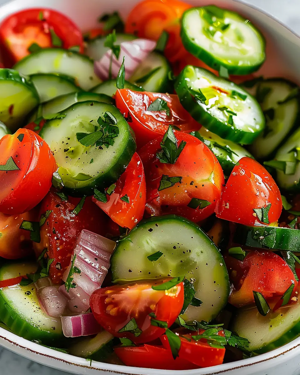 Incorporating a Cucumber Tomato Salad into your diet can bring impressive health benefits. The high water content of cucumbers can aid in hydration, while tomatoes provide lycopene, a powerful antioxidant linked to heart health. With their combination of fiber and low energy density, this salad is not only refreshing but also supportive of weight management.