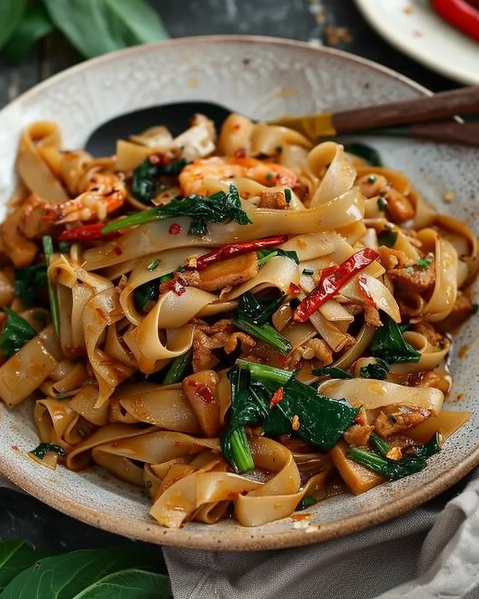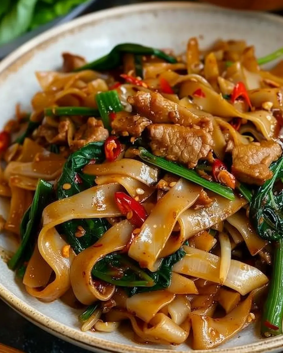 PrintDrunken Noodles: A Flavorful Twist with Turkey Bacon and Chicken Ham