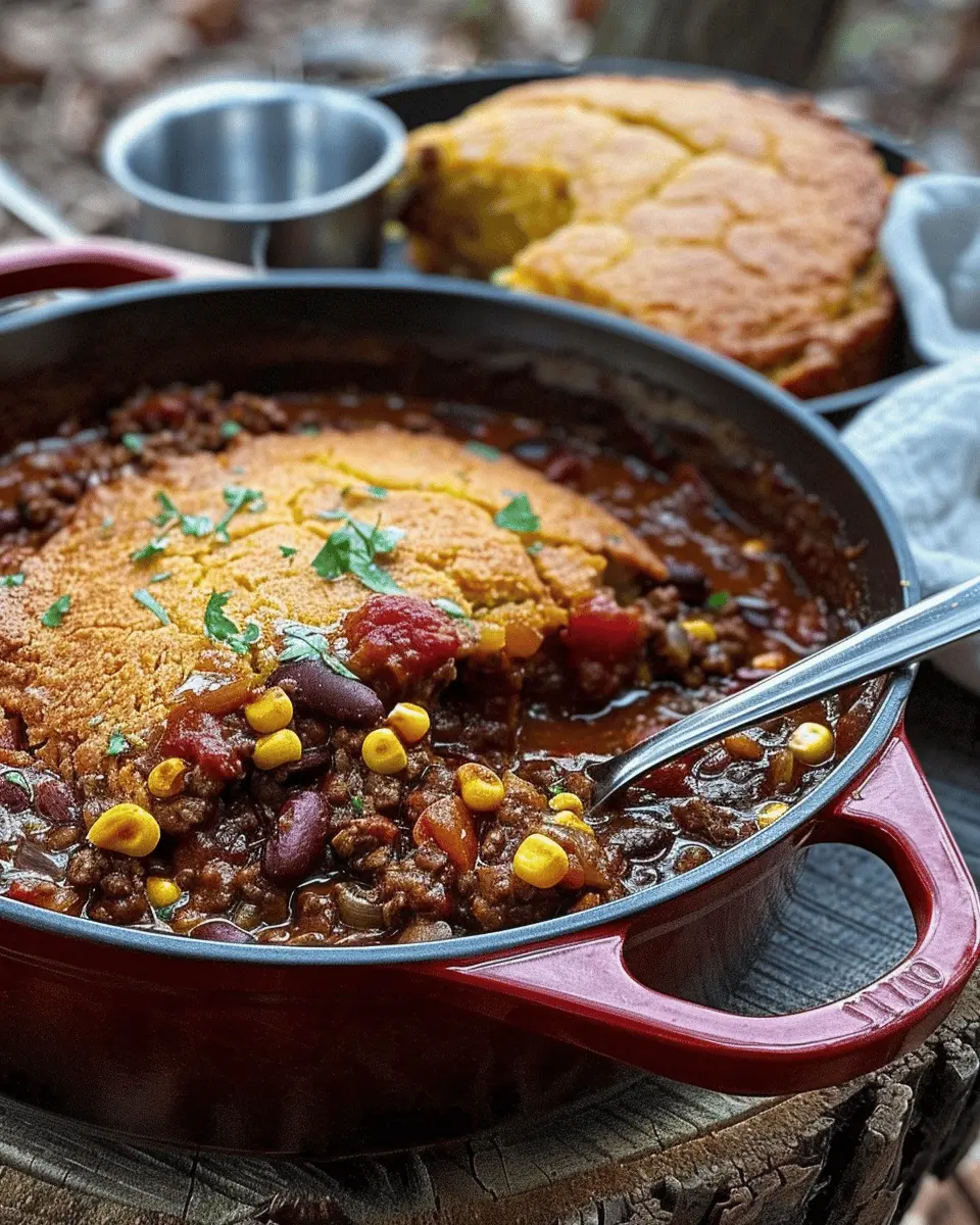 In summary, Dutch Oven Chili and Cornbread is not just a meal; it’s an experience that brings warmth and togetherness to any gathering. This hearty dish offers rich flavors and nutritious ingredients, making it a go-to recipe for busy weeknights or cozy weekend dinners. Whether you’re enjoying it on its own or pairing it with a side salad, the comforting blend of chili topped with cornbread is sure to please everyone at the table.