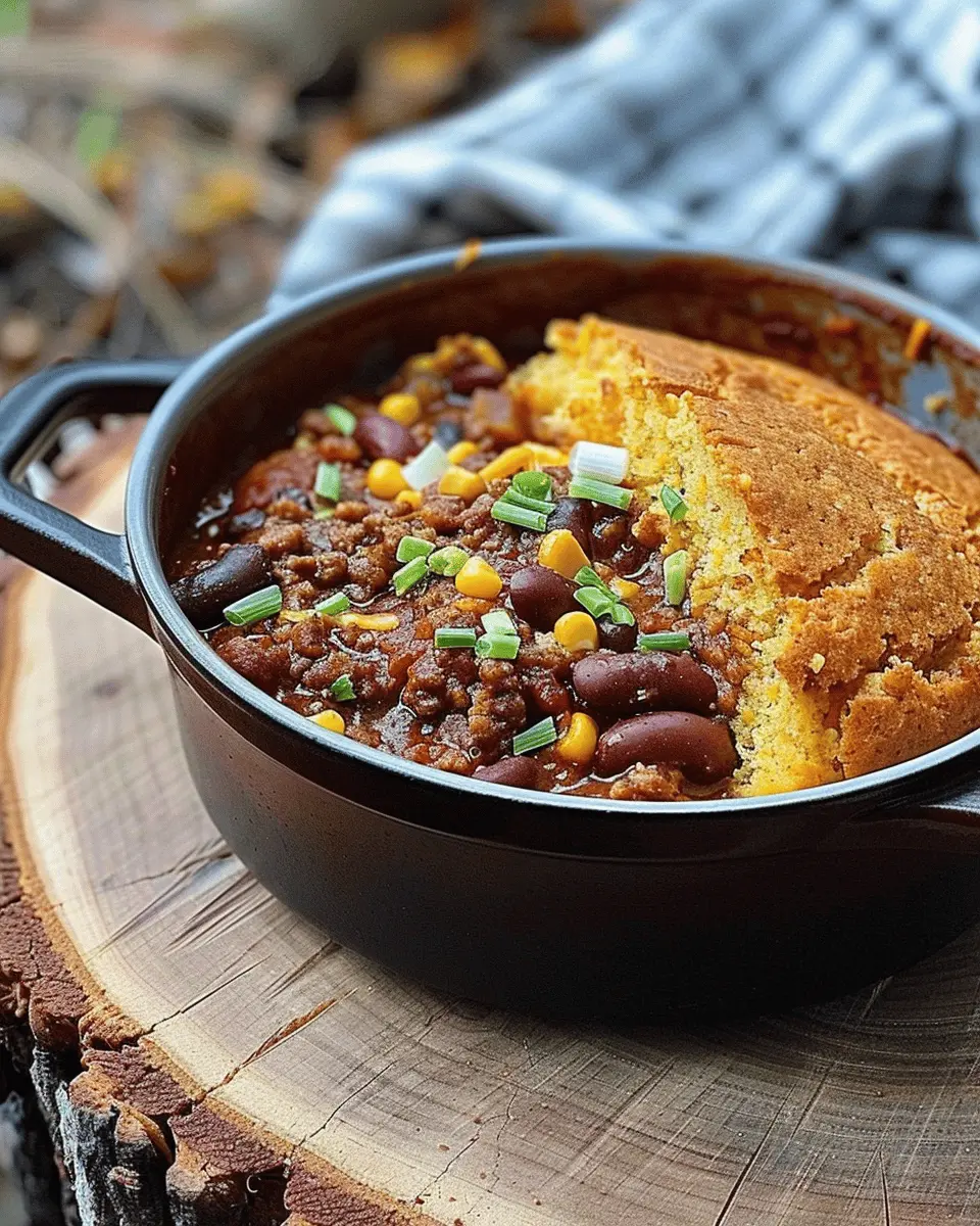 PrintDutch Oven Chili and Cornbread: Easy Comfort Food with Turkey Bacon