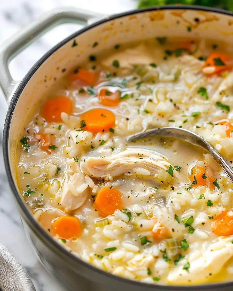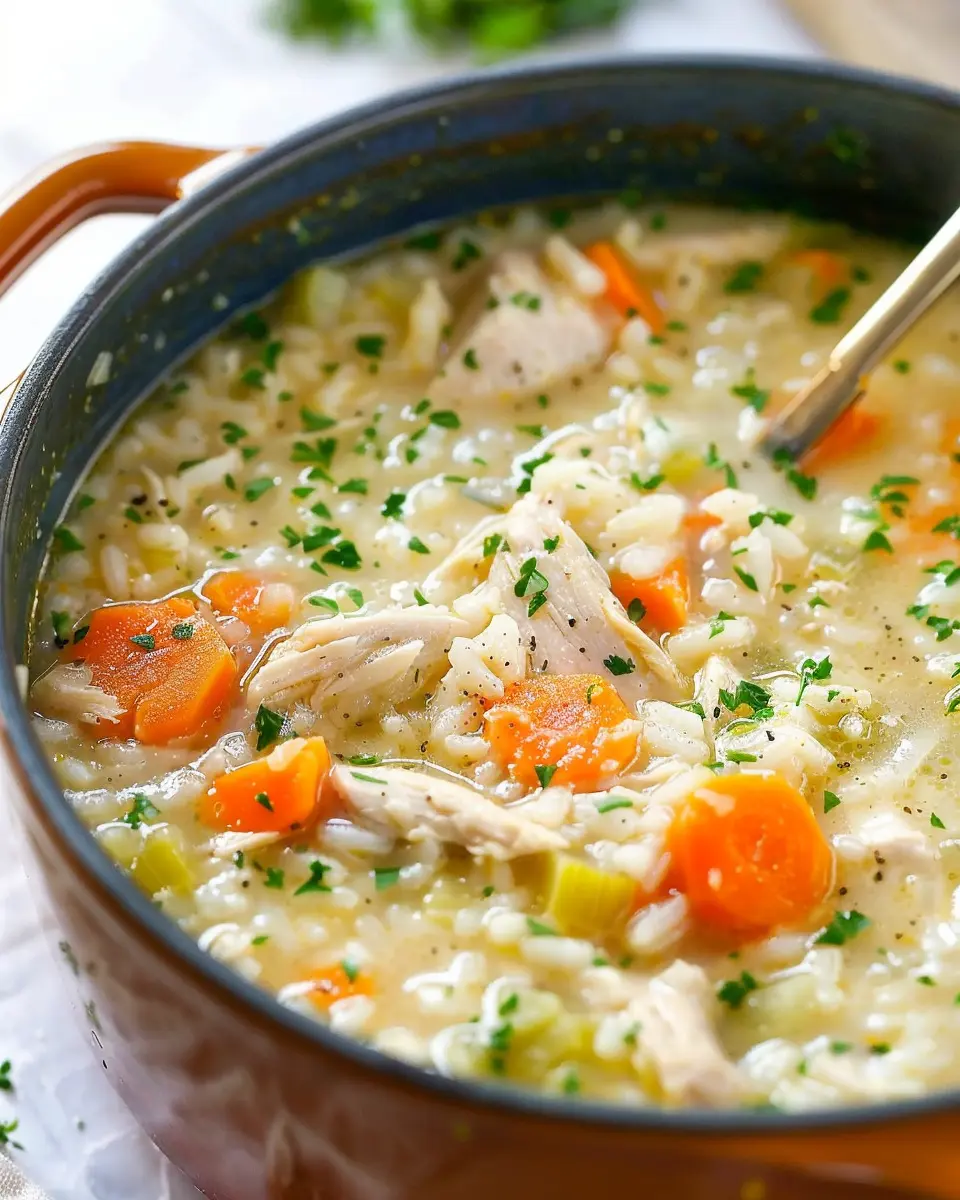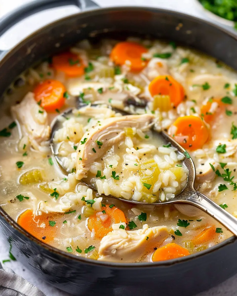 A warm and comforting soup perfect for chilly evenings, packed with tender chicken and rice.