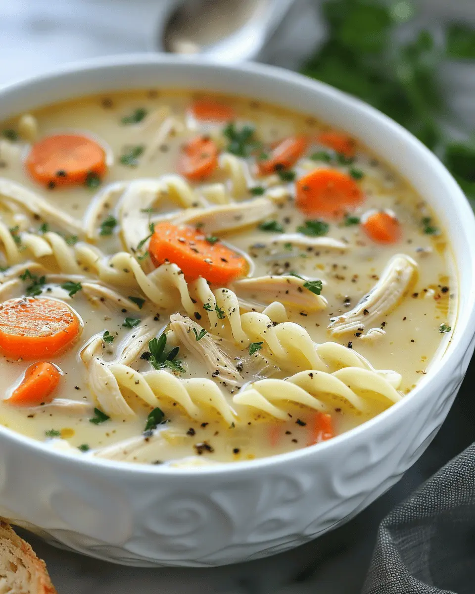 In today’s fast-paced world, many young professionals want delicious meals but don’t have hours to spend in the kitchen. This easy creamy chicken noodle soup can be prepared in under 30 minutes, using ingredients readily available in your pantry. It caters perfectly to fast-paced lifestyles while still tasting homemade.