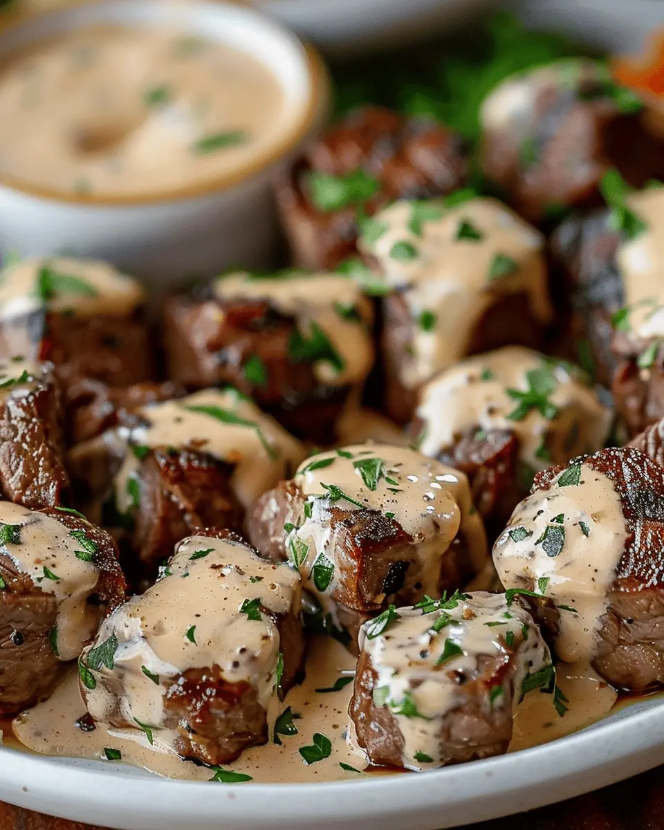 Keywords: Garlic Butter Steak Bites, Parmesan Sauce, Indulgent Treat