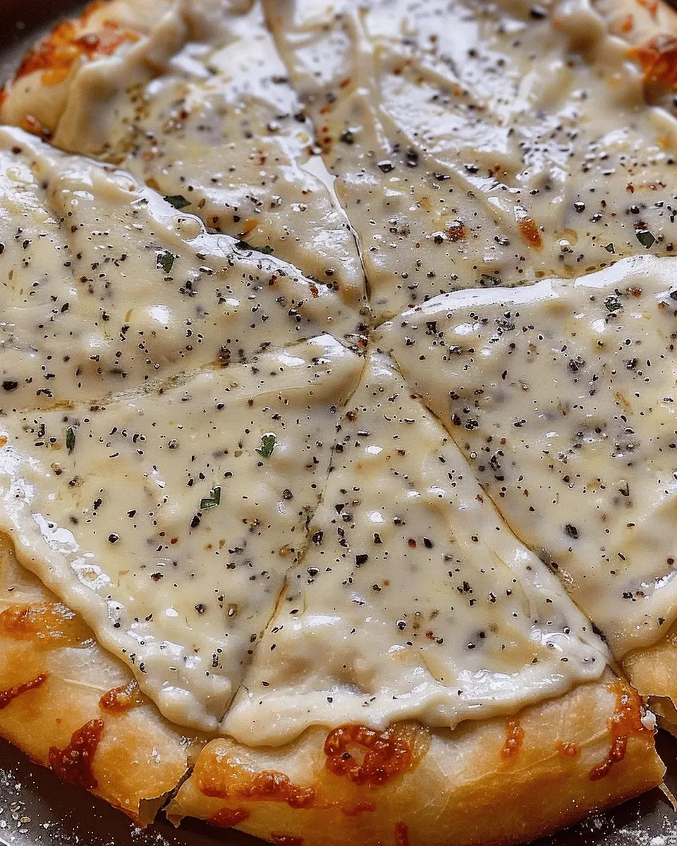 This sauce pairs wonderfully with toppings like turkey bacon, chicken ham, and fresh veggies like spinach and bell peppers. The creamy, garlicky flavor complements a variety of toppings, making your pizza familiar yet unique.