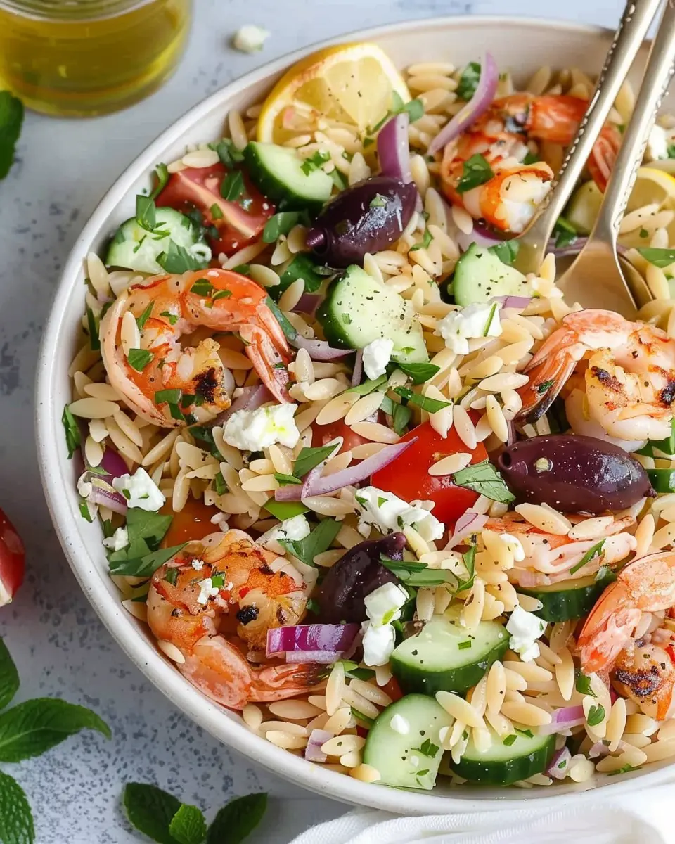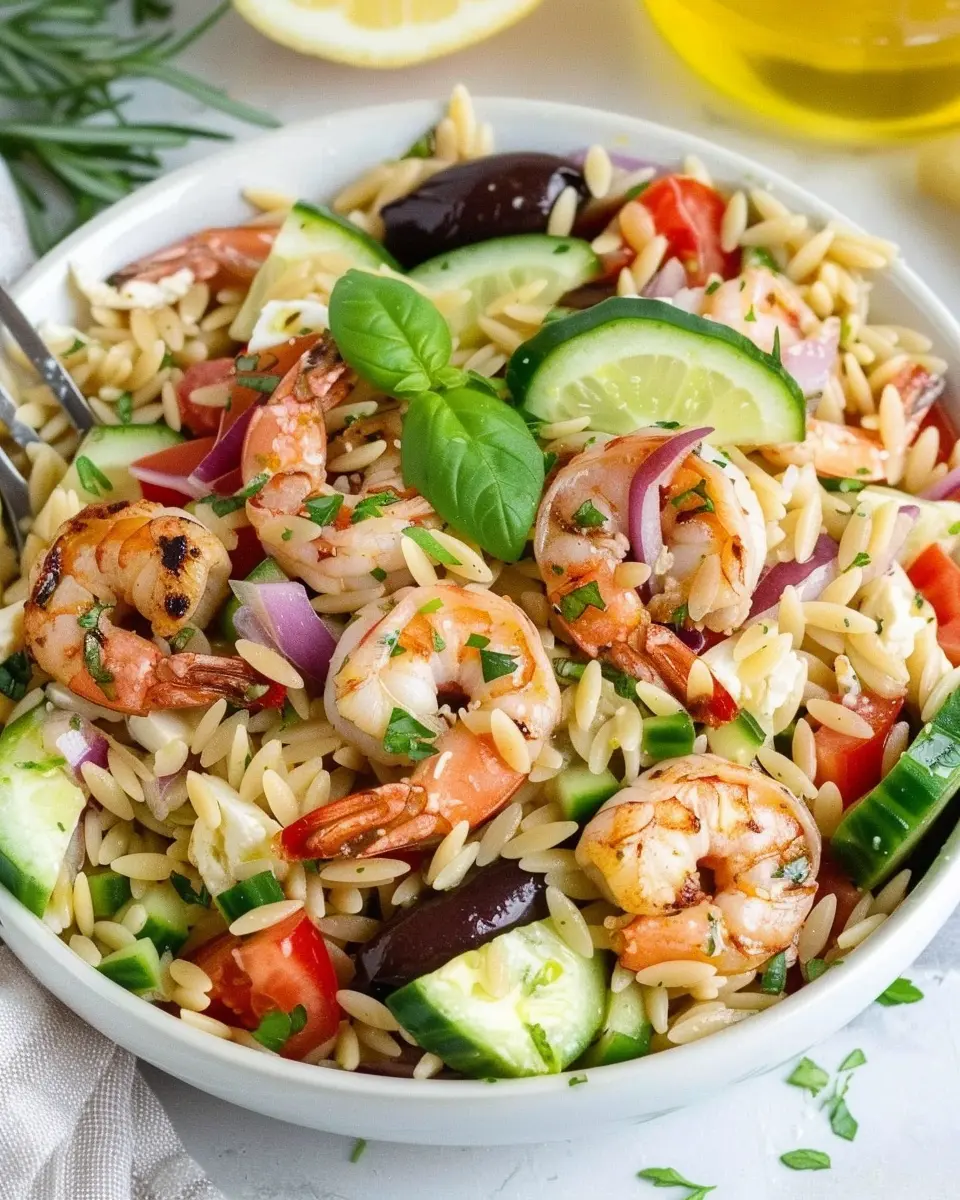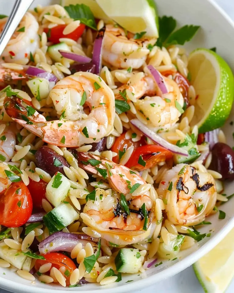 PrintGreek Orzo Pasta Salad with Grilled Shrimp: A Fresh, Zesty Delight
