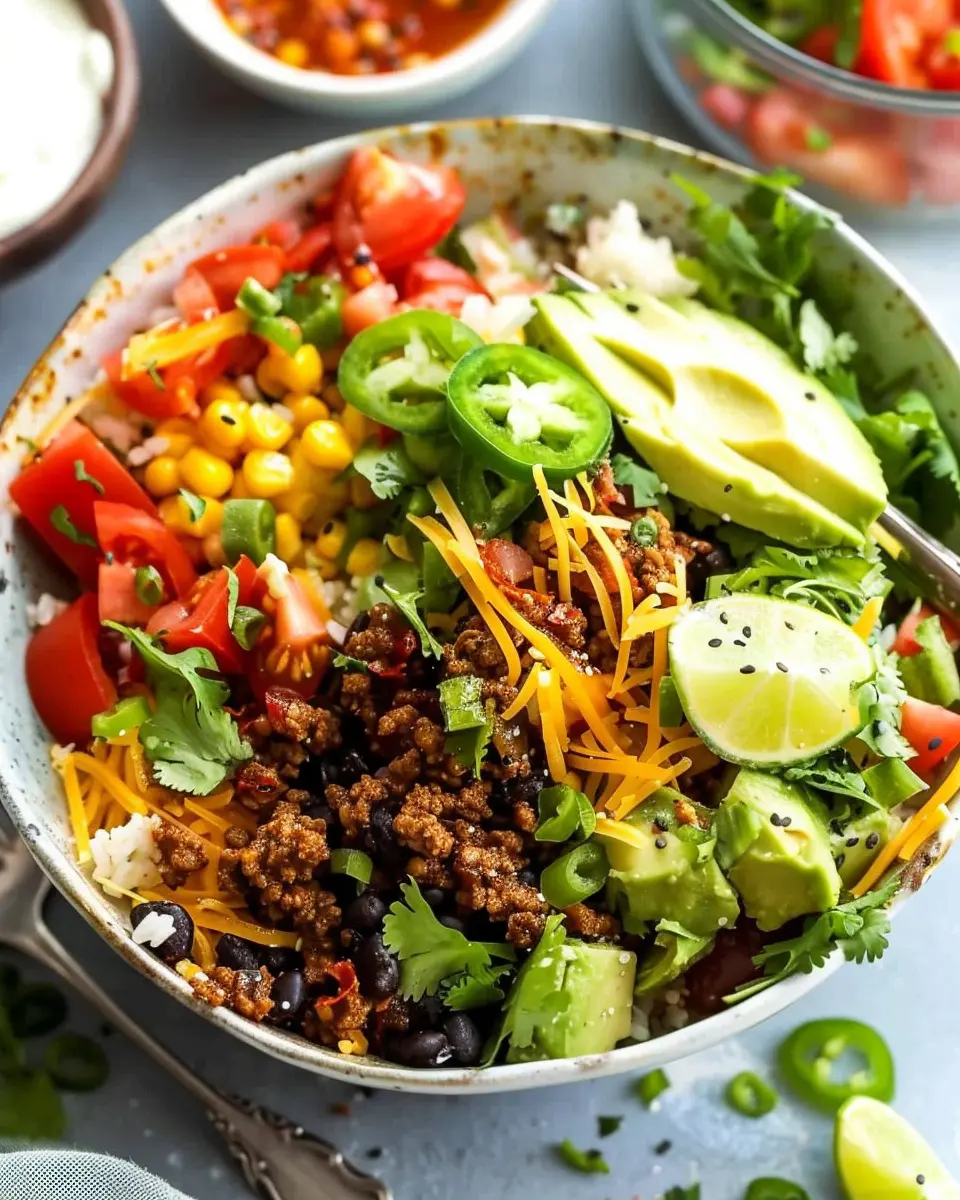 • Endless Customization: One of the great things about taco bowls is that you can tailor them to fit your cravings! Want extra spice? Toss in some jalapeños. Prefer a vegetarian option? Swap out the beef for some colorful roasted veggies. The possibilities are endless!