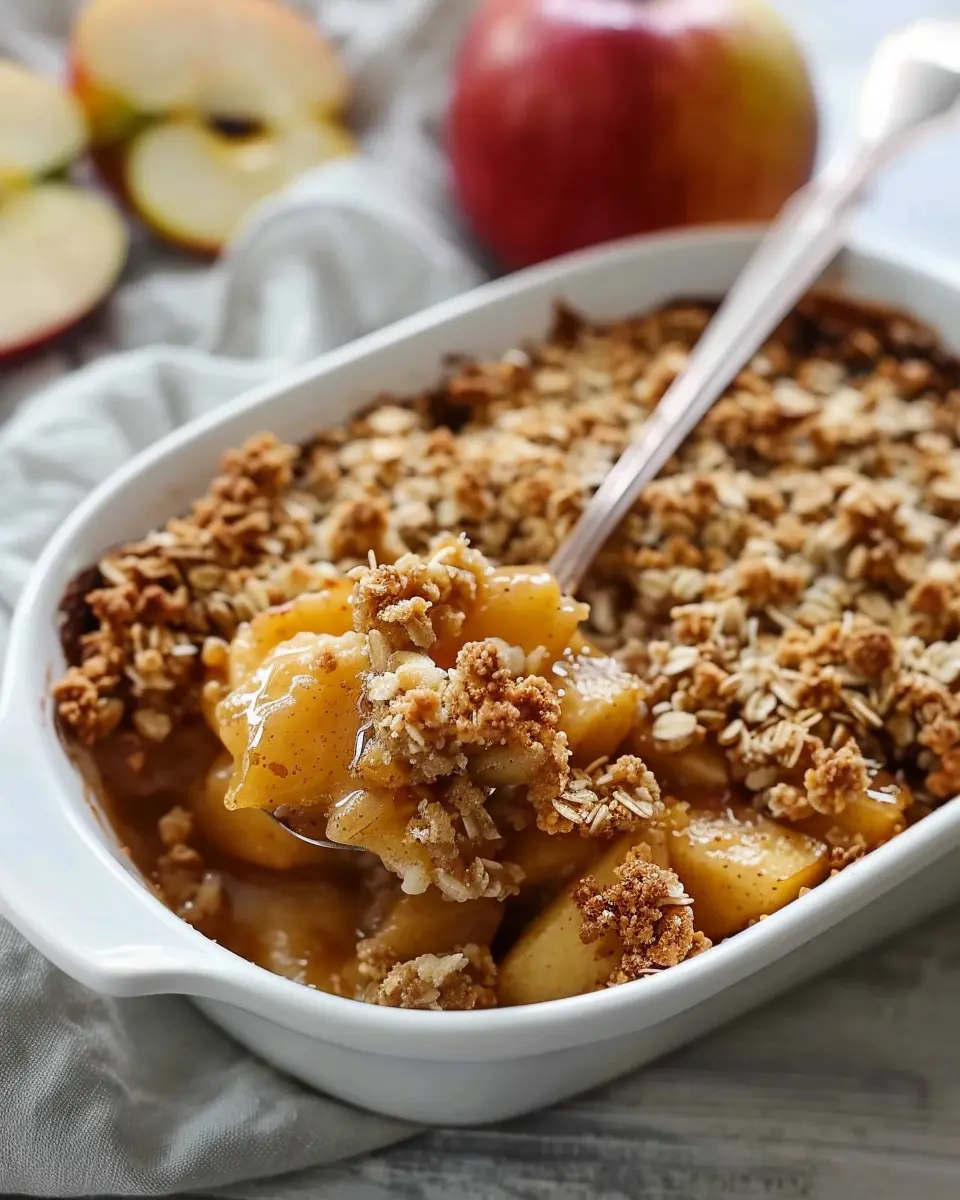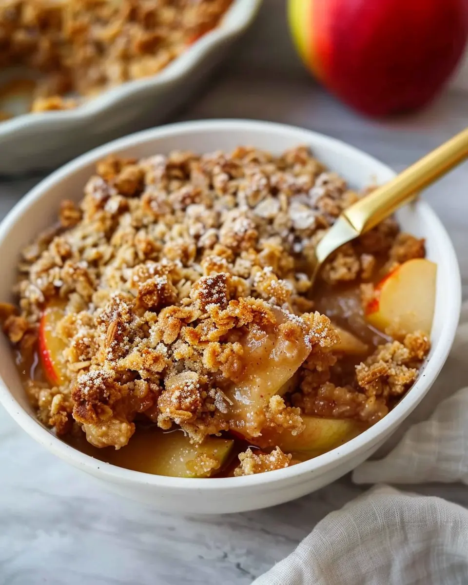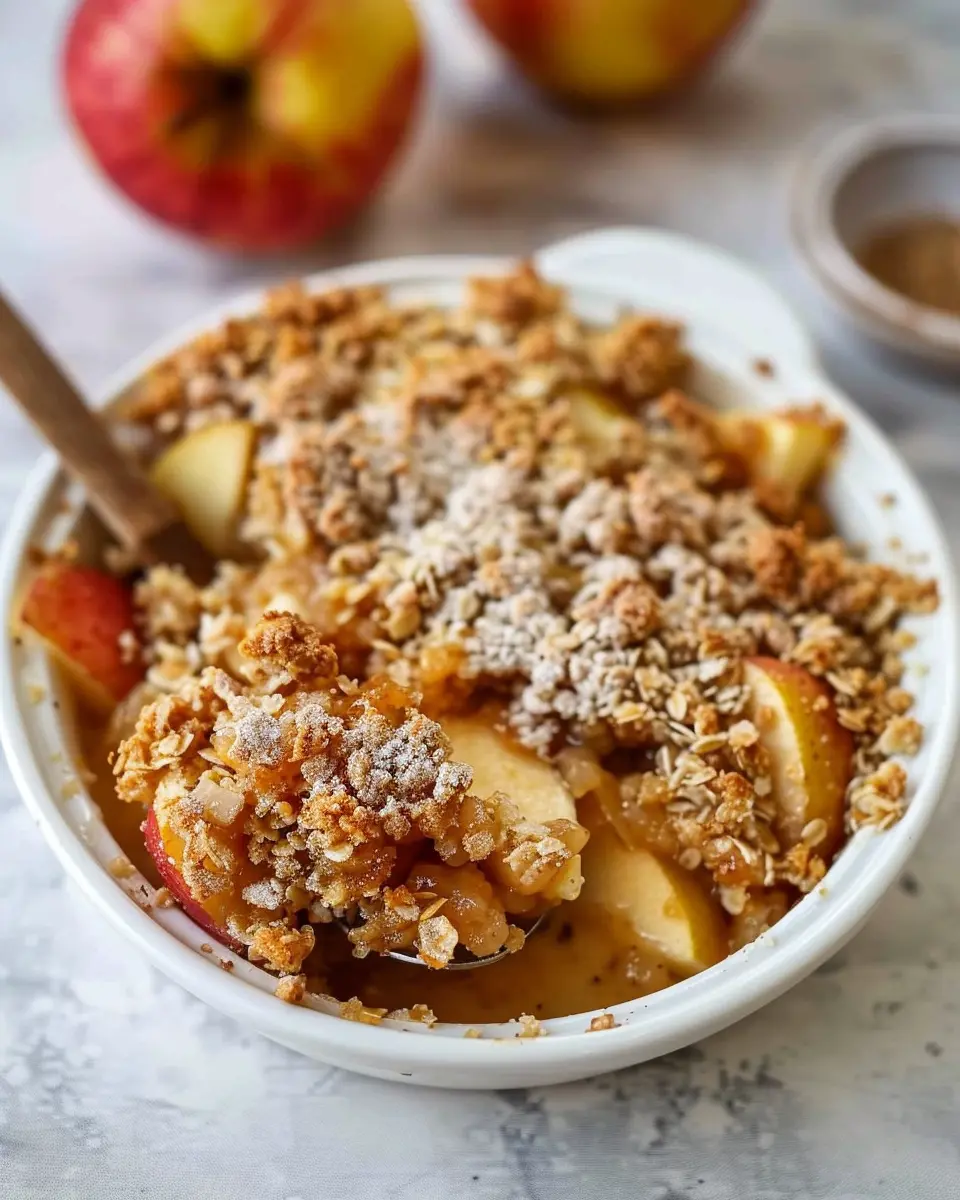 A delightful and healthy breakfast option that combines the sweetness of apples with a crunchy crumble topping.