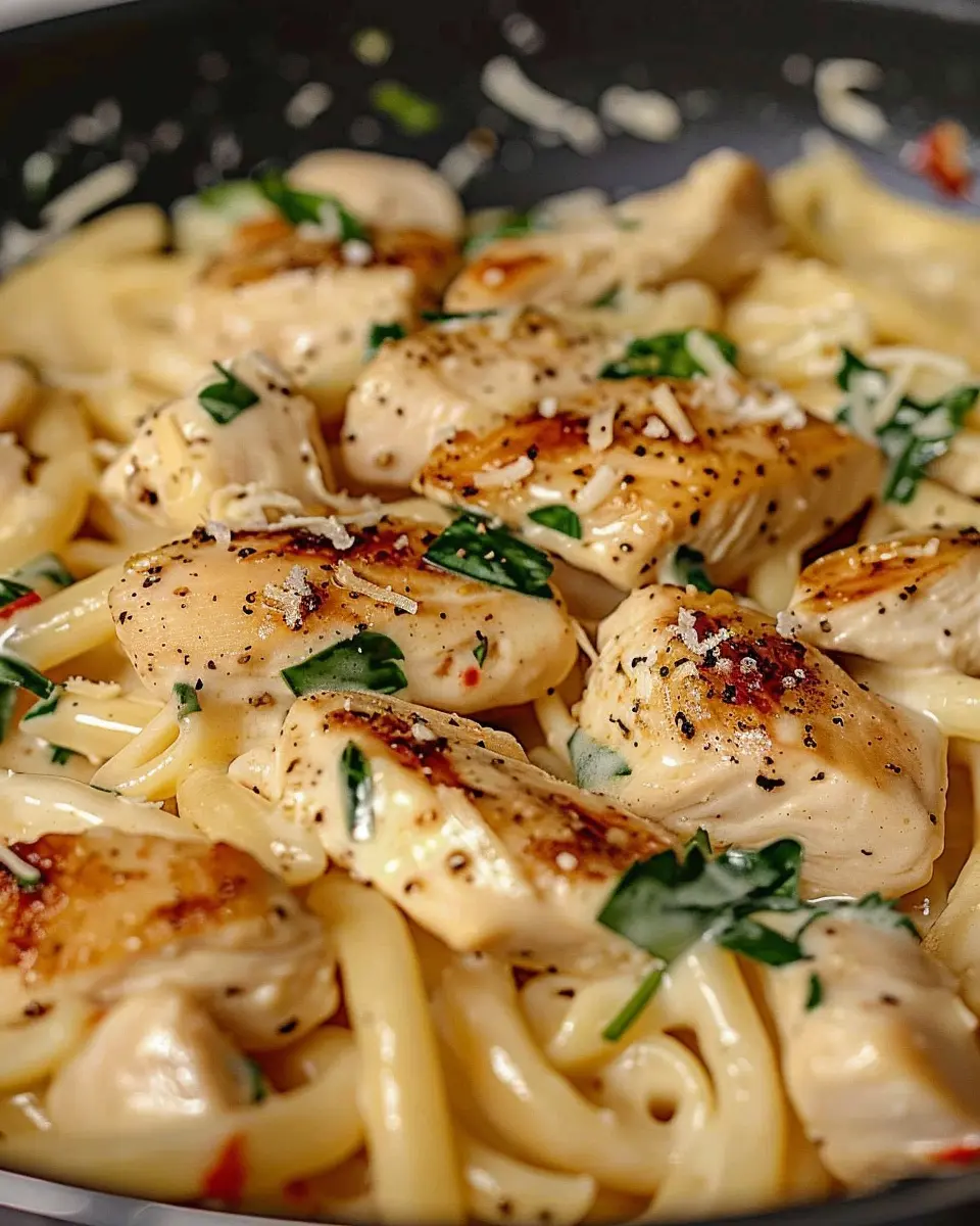 Once you’re set, the actual cooking will take approximately 20 minutes. This includes simmering your chicken, tossing in the pasta, and blending in those delicious garlic and parmesan flavors. Speedy lunches or dinners are just a stir away!