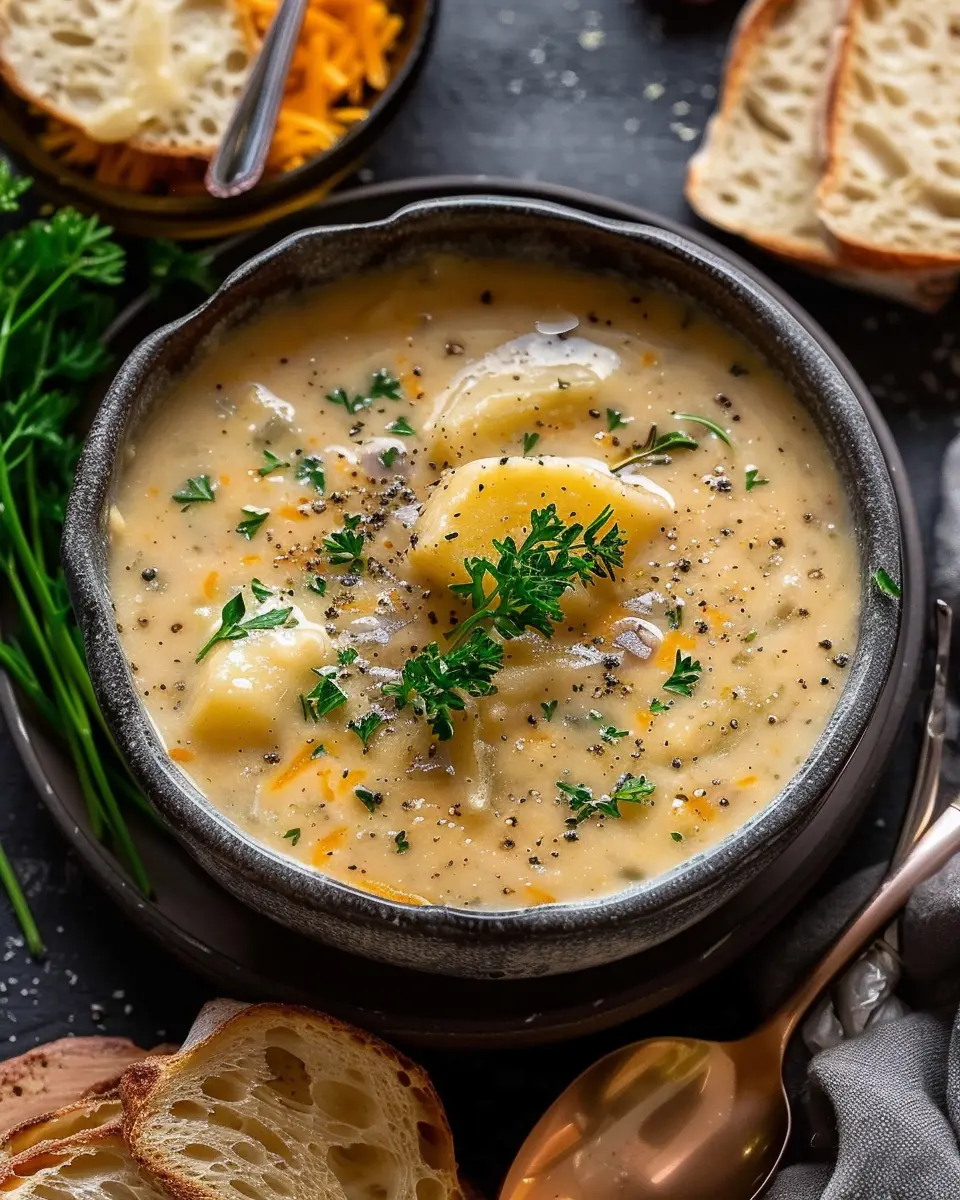 PrintHearty Cheddar Garlic Herb Potato Soup: Comforting and Easy Recipe